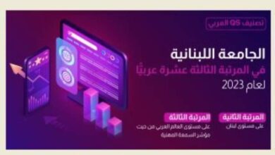 الجامعة اللبنانية تتقدم في تصنيف QS العربي لسنة 2023 وتحتل المرتبة الثانية محليا والثالثة إقليميًّا من حيث مؤشر السّمعة المهنية