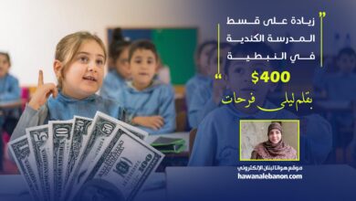 بقلم ليلى فرحات | زيادة على قسط المدرسة الكندية في النبطية 400$