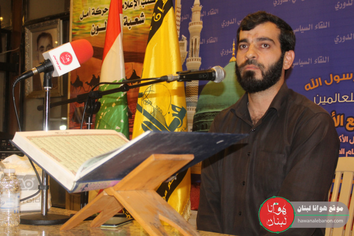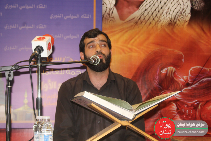 استهل الحفل بآيات بينات من الذكر الحكيم رتلها الشيخ عباس عبود، وبعدها باقة من الاهازيج الاسلامية رتلها الشيخ ساجد، عرّف الحفل السيد علي الشيخ.