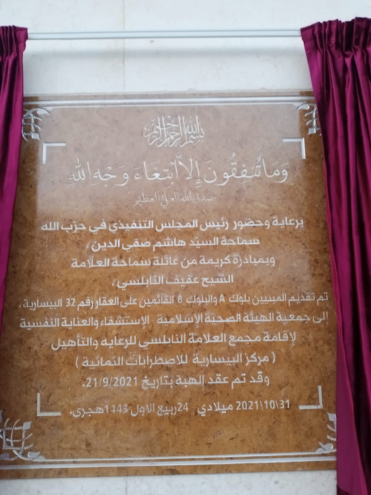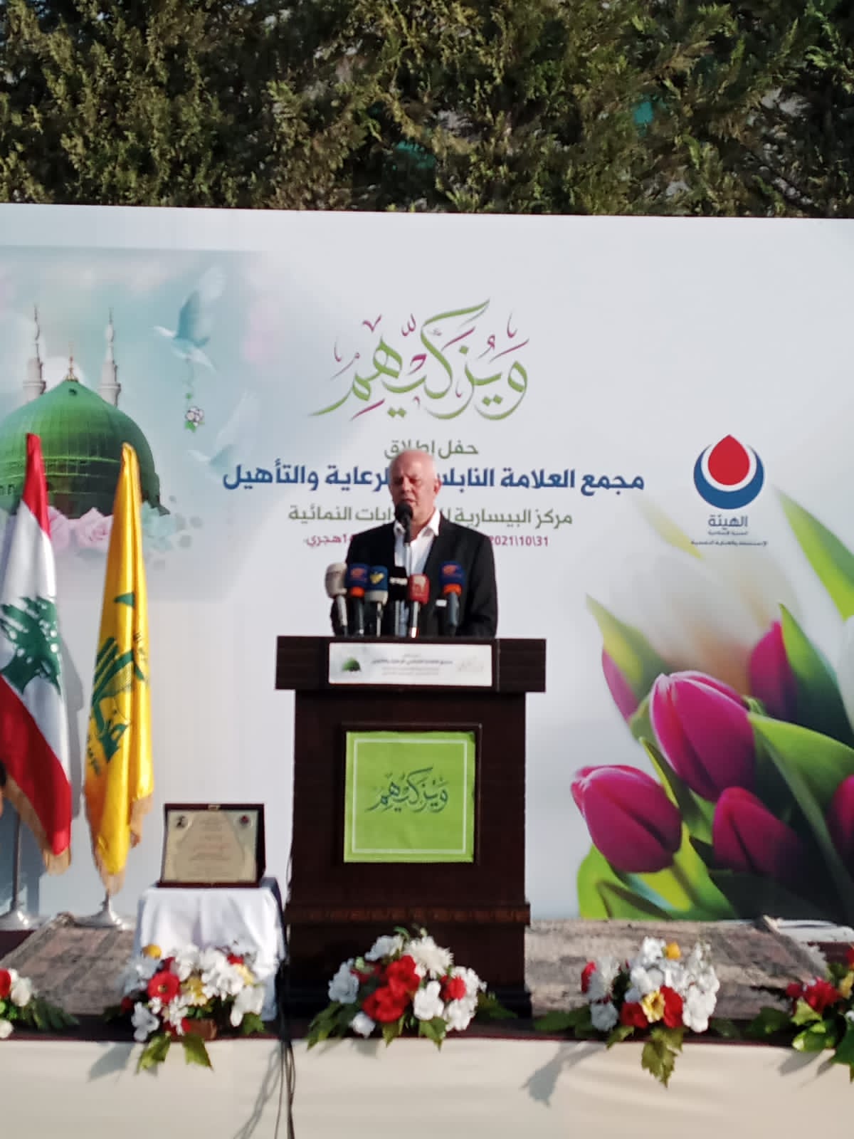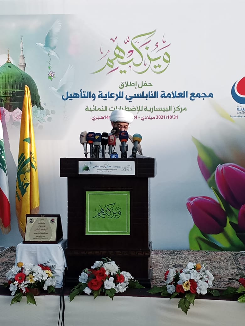 حفل الافتتاح الذي اطلقه حزب الله والهيئة الصحية الاسلامية – قسم الاستشفاء والعناية النفسية بمناسبة مولد الرسول الاكرم محمد (ص) حضره النائب حسين جشي وممثل سفير الجمهورية الاسلامية في لبنان كرم الله مشتاقي والمستشار الثقافي للجمهورية الاسلامية عباس خميار وممثل سيادة المطران ايلي الحداد ورئيس مجلس الامناء في تجمع العلماء المسلمين الشيخ غازي حنينه رؤساء و اتحادات بلديات المنطقة وممثلي الهيئات الصحية والتربوية والاجتماعية والثقافية لفيف من العلماء و عائلة العلامة النابلسي ومخاتير المنطقة.