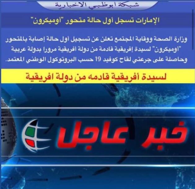تسجيل أول حالة متحور “أوميكرون” في الامارات حاصلة على جرعتين لقاح