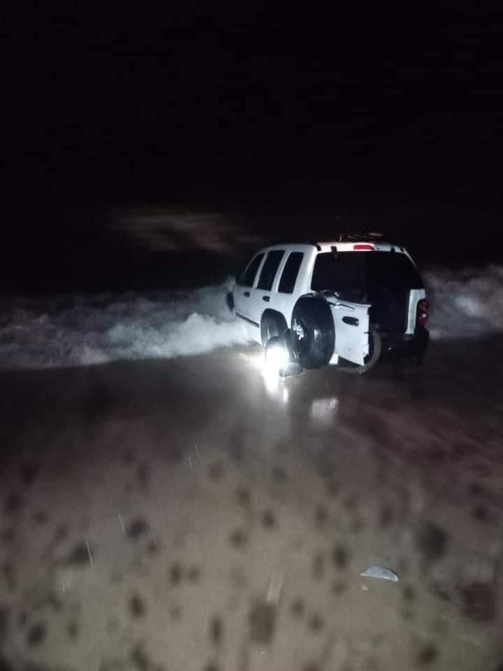 نزلوا إلى البحر بسيارتهم الجيب للتسلية،، فعلقوا وغرقوا وطلبوا النجدة..