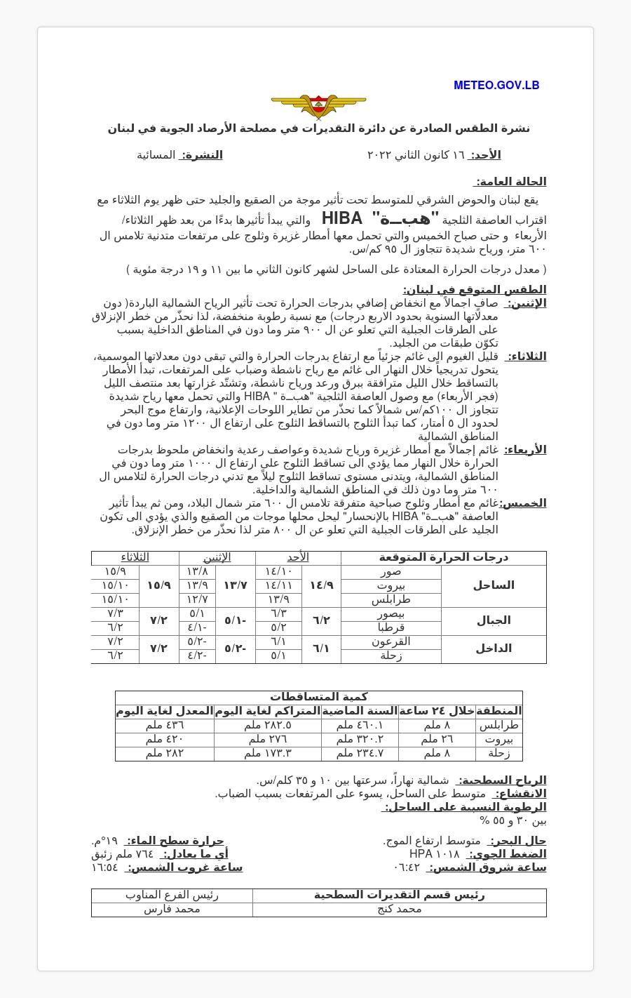 العاصفة الثلجية “هبة HIBA” الأولى هذا العام تسيطر على لبنان