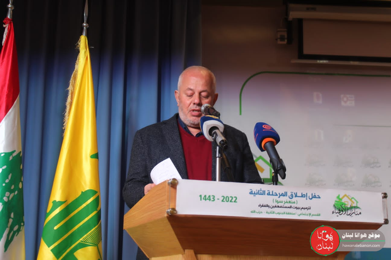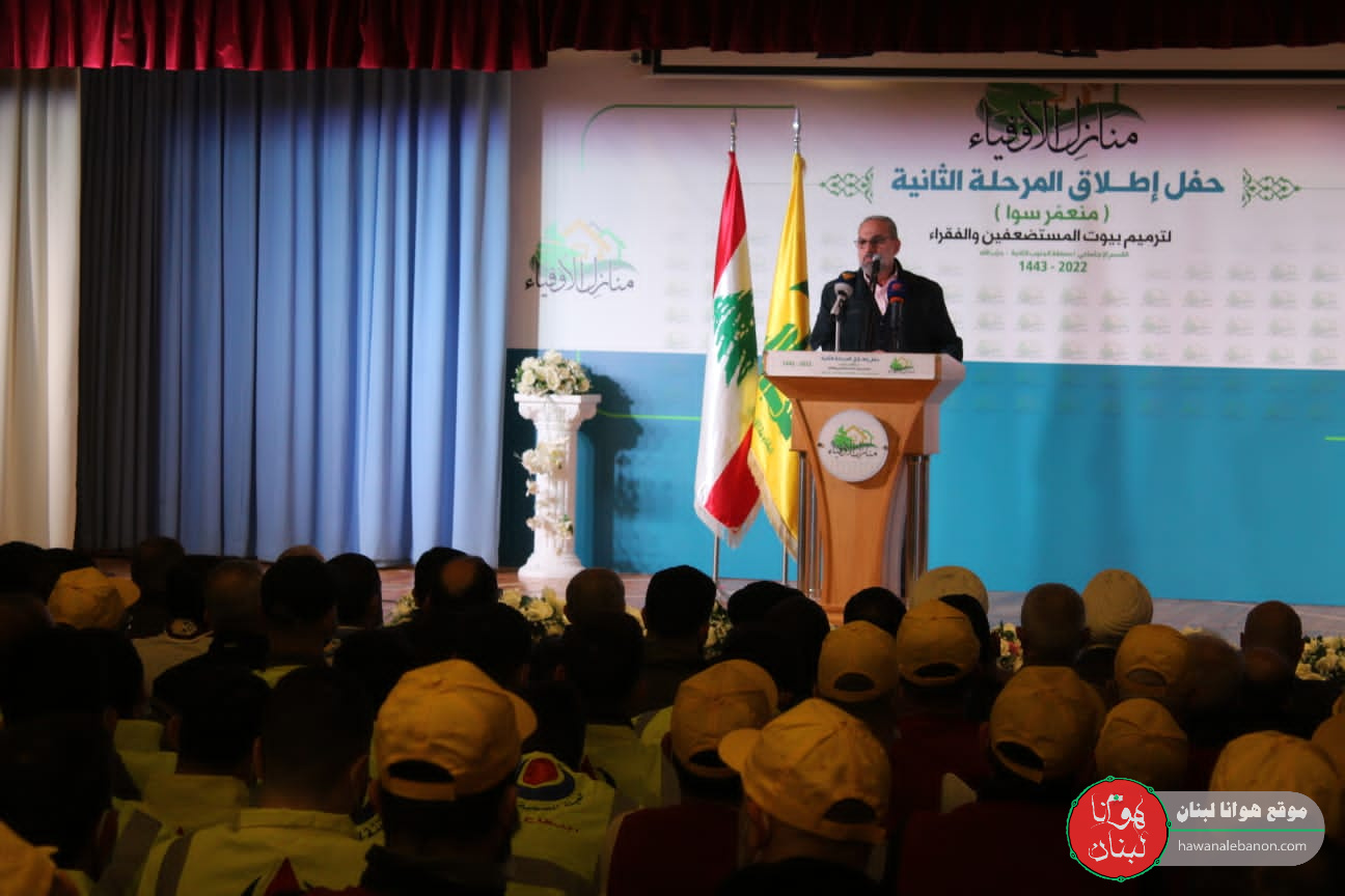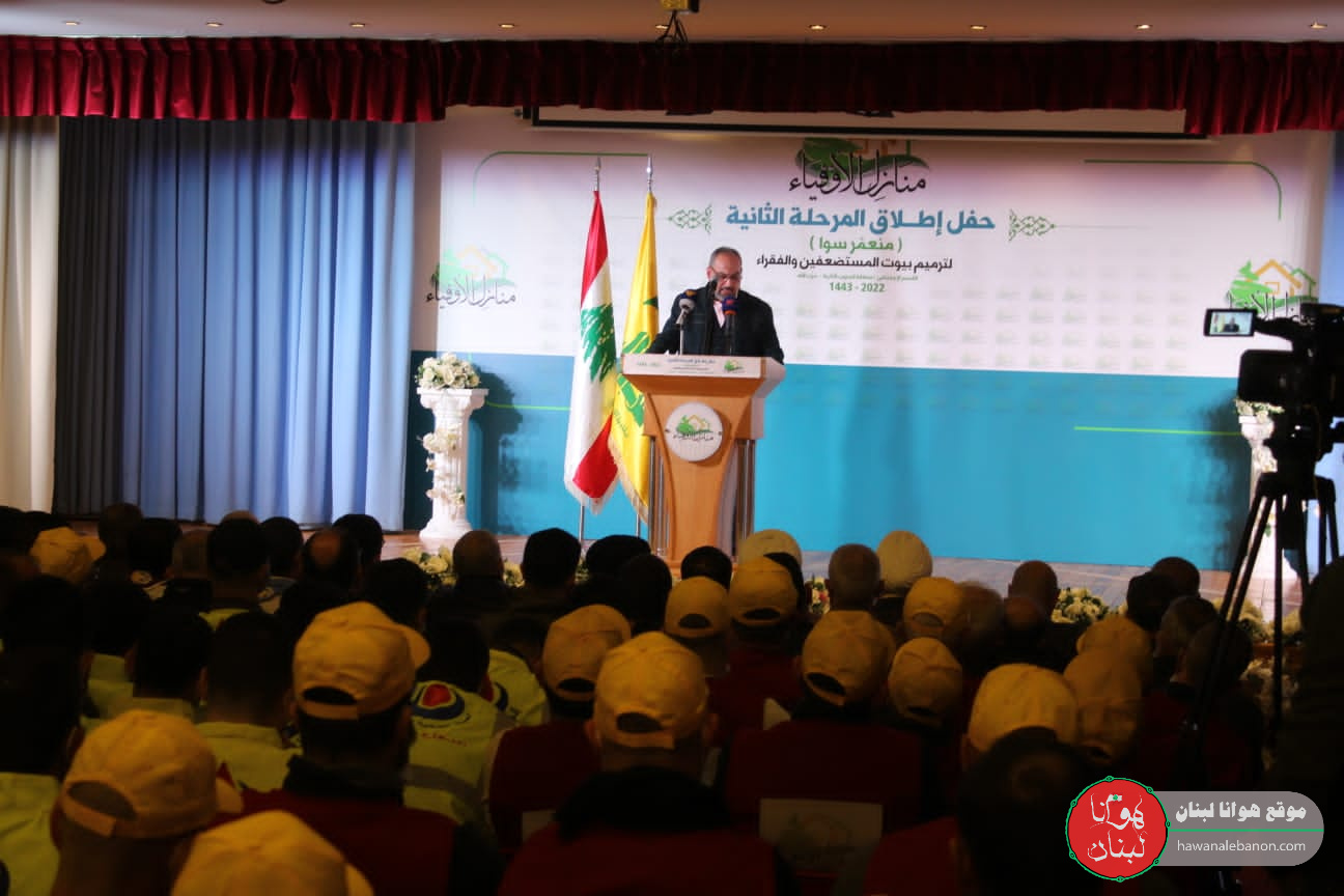 بعد اكتمال مرحلة وتعاونوا، استكمل اليوم في مدينة النبطية اطلاق الحملة الثانية من المشروع تحت عنوان “منازل الاوفياء” منعمر سوا، برعاية وحضور رئيس المجلس التنفيذي السيد هاشم صفي الدين، حيث افتتح اللقاء بعد الاستماع الى آيات بينات من الذكر الحكيم، بتعريف القاهُ الحاج عماد عواضة وتلاها كلمة للسيد صفي الدين منوهاً بالعمل السابق ومتنمنياً التوفيق في المشاريع القادم، يذكر ان فعاليات الحفل اقيمت في قاعة مدارس المصطفى في مدينة النبطية.