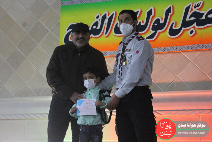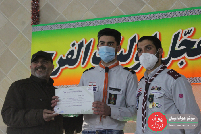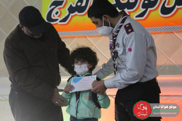 تخلل الحفل باقة من الاناشيد الكشفية لفرقة خاصة من الفوج وتواشيح دينية للرادود حسين علامة واحتتم بتوزيع شهادات تقديرية مع اطلاق حملة الاربعون صباحاً 2021.