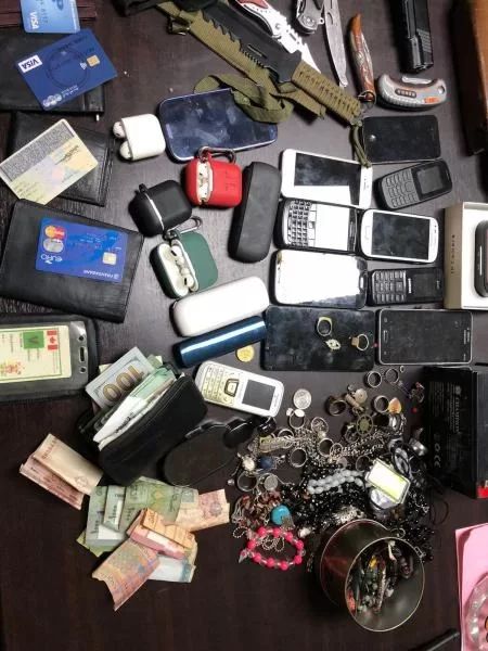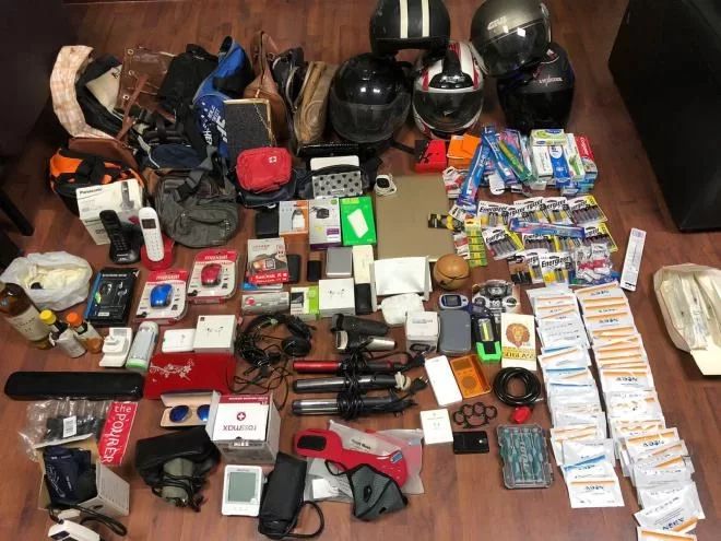 بتفتيشه ومنزله، تمّ ضبط كميّة كبيرة من المسروقات (أجهزة خلوية، ساعات يد، آلات لفحص الضغط، خوذ واقية، آلات لتصفيف الشّعر…)، إضافةً إلى كميّة من حشيشة الكيف وحبوب مخدّرة، وخناجر و”سكاكين ست طقّات”…