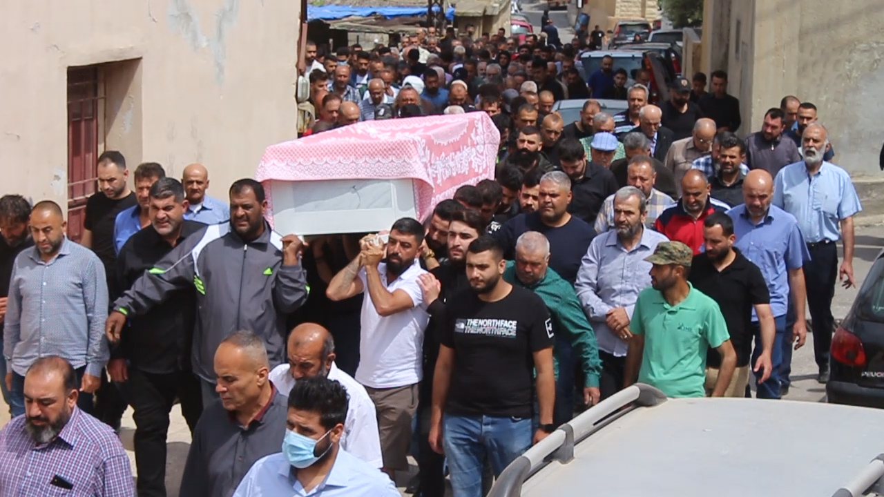 بعد الاستماع الى مجلس عزاء حسيني توجه الحاضرون الى منزل ذويها، حيث حُمِل النعش على اكف المشيعين وصولاً الى جبانة البلدة حيث امّا الصلاة على جثمانها فضيلة الشيخ حسن دبوس ومن ثم ورري الثرى في جبانة البلدة.