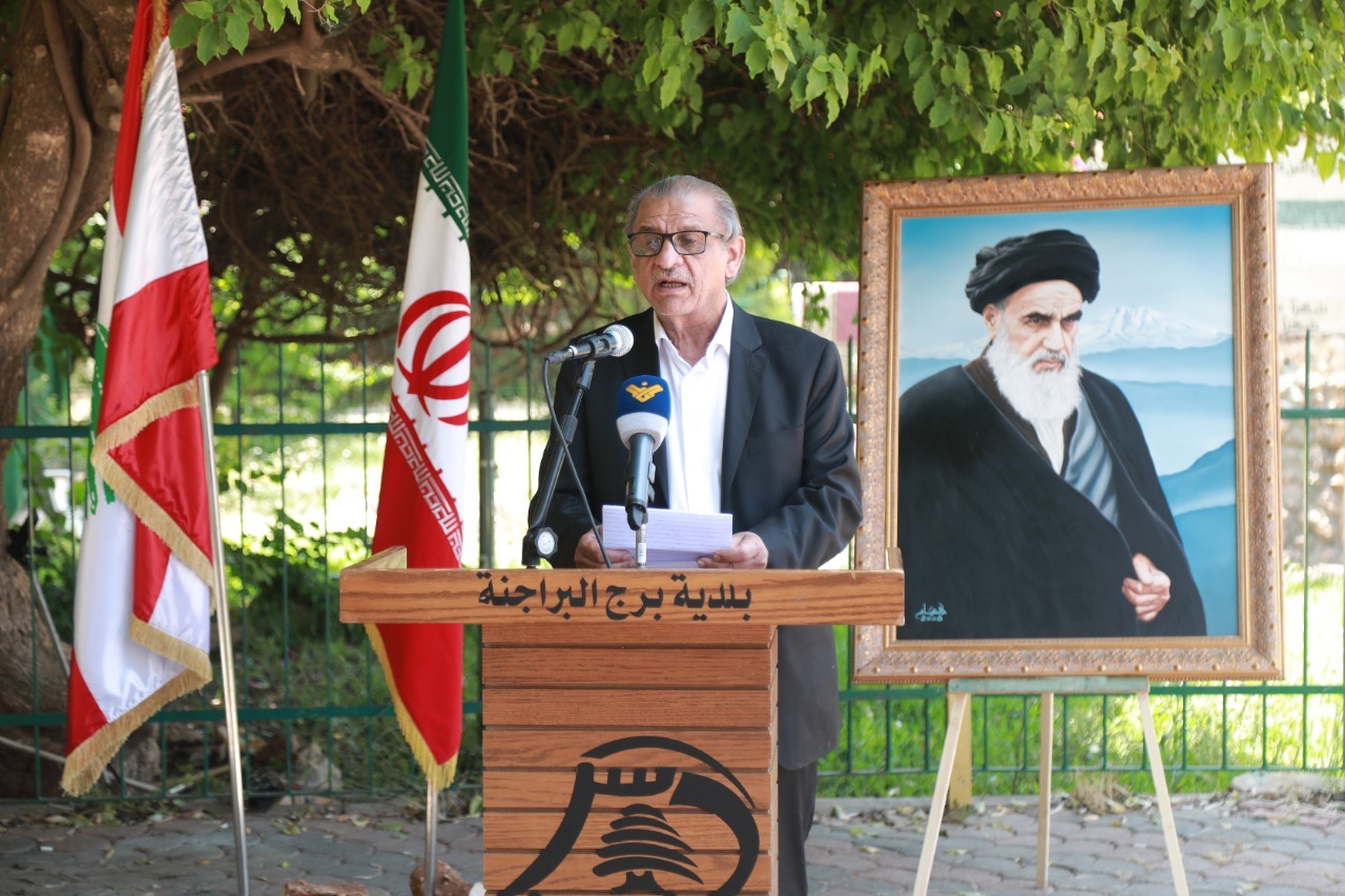 وألقى عضو المجلس البلدي حسن السبع كلمة ركز فيها على دور إيران المحوري في دعم حركات التحرر في العالم وما قدمته إيران من عون للبنان في أصعب الظروف مثنياً على دور الفنانين في تجسيد صورة رجل غير وجه العالم قبل 33 عاماً والذي هو الإمام الخميني.