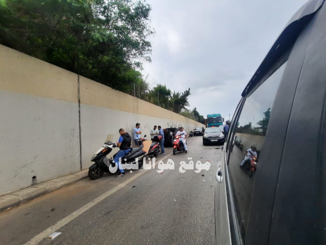 انقلاب حافلة على طريق المطار واقتصرت الاضرار على الماديات