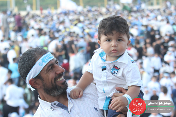 اجتمع محبي وموالي الامام المهدي “عج” من كل حدب وصوب تلبيه وولاء للامام اجمتعوا في الملعب وعلى وقع سلام إمامي .. التي ردودها المحبين وعوائل الشهداء والجرحى، فإمتزجت الفرحة بالغصة فرحة شوقاً للقاء الامام وغصة للاشتياق.