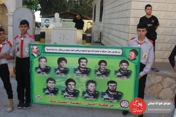 اقامت حركة امل وكشافة الرسالة الاسلامية فوج الامام المهدي “عج” في بلدة أنصارية، انطلقت من حسينية البلدة تقدمتهم سيارة الاسعاف التابعة للدفاع المدني وخلفهم سارت الفرق الكشفية والفرقة الموسيقية وحملة الصور والاعلام والرايات وصولاً الى جبانة البلدة، لقراءة الفاتحة على اضرحة الشهداء.
