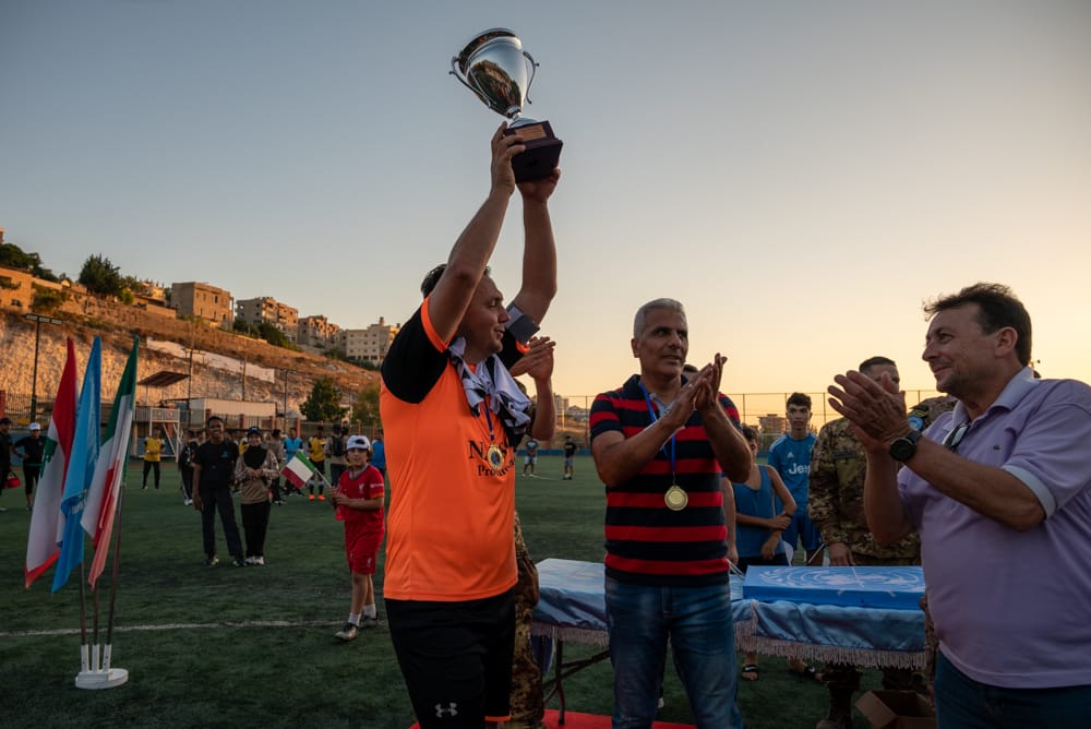 اختتمت دورة كرة القدم التي نظمتها قيادة القطاع الغربي في اليونيفيل والكتيبة الإيطالية على ملعب بلدية عين بعال في قضاء صور والتي شارك فيها 16 فريقاً رياضياً من وحدات اليونيفيل والجيش اللبناني وفرق محلية من الجنوب بحضور الجنرال الإيطالي ماسيميليانو ستيكا ورئيس البلدية الأستاذ حاتم بسما.