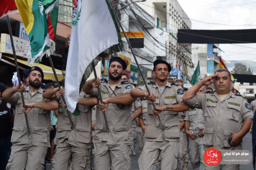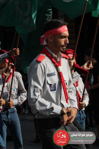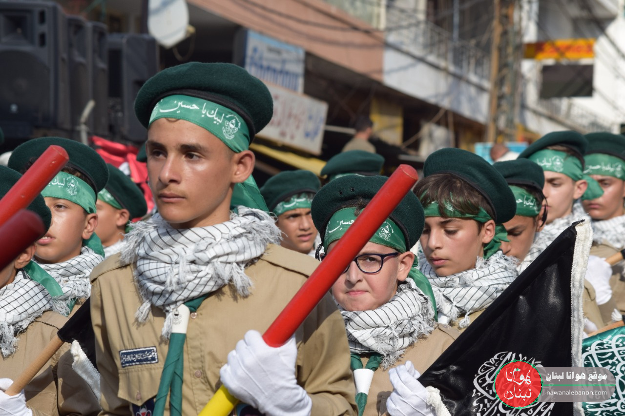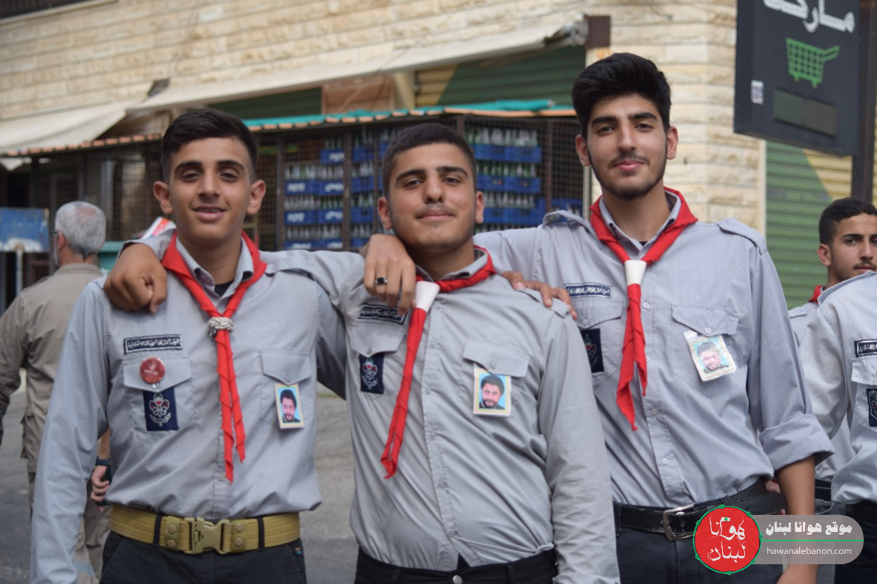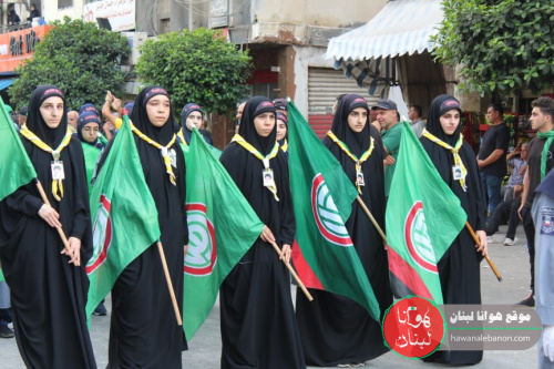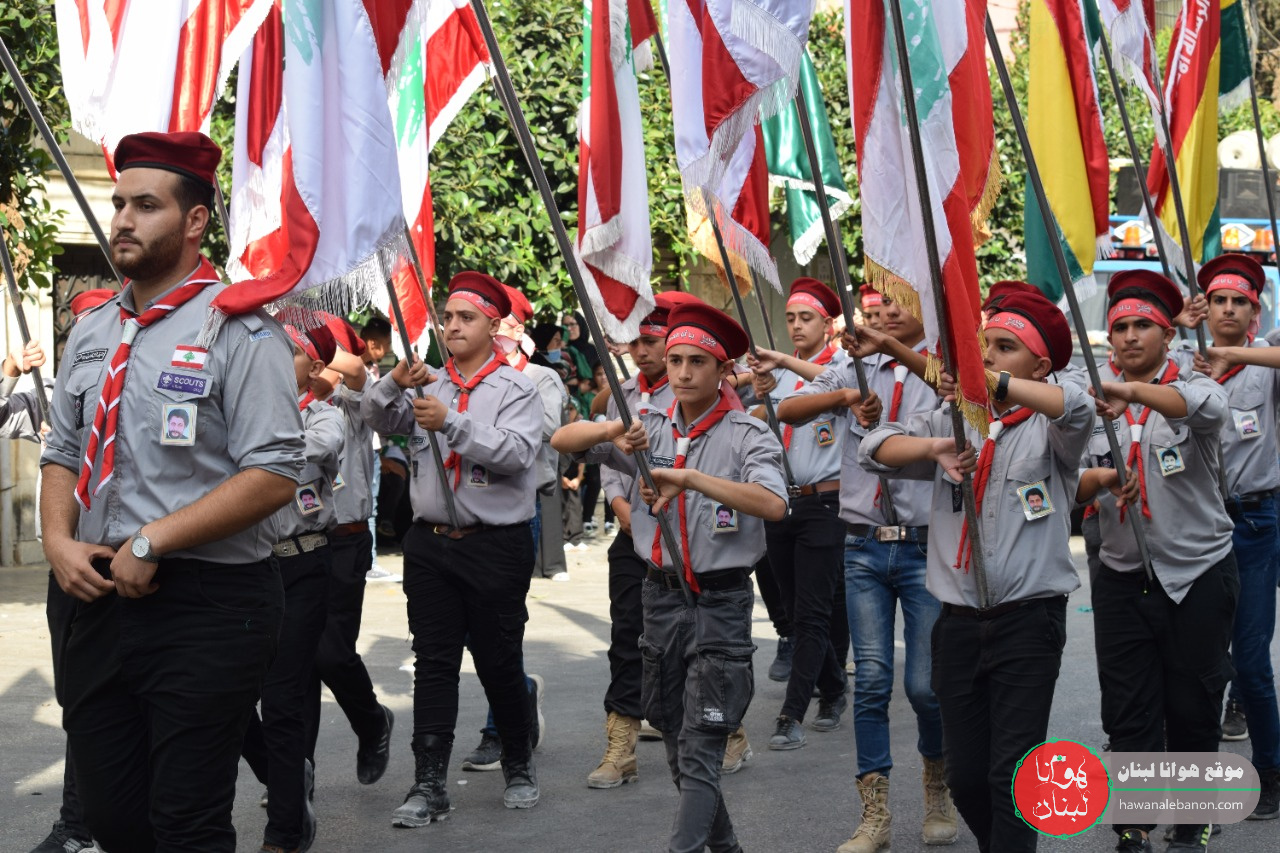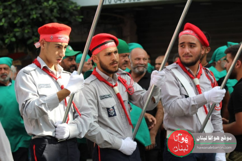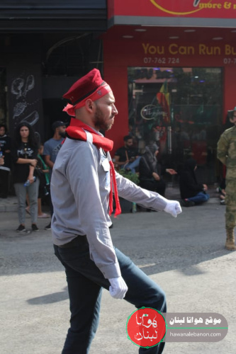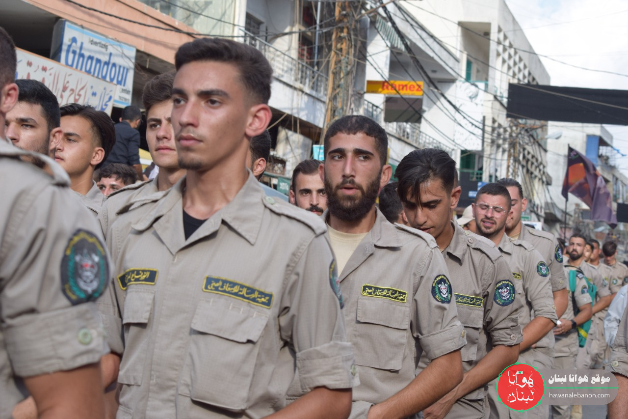 المسيرة انطلقت من أمام دوار المنشية في المدينة يتقدمها فرق رمزية من قادة الأفواج الكشفية والجوالة في كشافة الرسالة الاسلامية والمرشدات والدليلات والزهرات وعناصر من جمعية الرسالة للاسعاف الصحي والمسعفين والمسعفات في الجمعية وحملة الرايات الحسينية والاعلام اللبنانية وحركة امل وكشافة الرسالة الاسلامية والمجسمات العاشورائية ثم امهات الشهداء ومكتب شؤون المرأة في الحركة ثم فرق اللطيمة الذين ارتدوا زيا يجسد علم افواج المقاومة اللبنانية أمل بحضور النائبين قبلان قبلان وهاني قبيسي ، عضو هيئة الرئاسة في حركة امل خليل حمدان، رئيس المكتب السياسي في الحركة جميل حايك، عضو الهيئة التنفيذية في الحركة احمد بعلبكي، امام مدينة النبطية الشيخ عبد الحسين صادق، المسؤول التنظيمي المركزي في الحركة يوسف جابر، مفوض عام كشافة الرسالة قاسم عبيد واعضاء المفوضية في الجمعية، المسؤول التنظيمي لاقليم الجنوب في الحركة نضال حطيط واعضاء قيادة الاقليم، وعدد من اعضاء المكتب السياسي والهيئة التنفيذية في الحركة، محافظ النبطية بالوكالة حسن فقيه، رئيس اتحاد بلديات الشقيف محمد جميل جابر، رئيس اتحاد ساحل الزهراني علي مطر ، رئيس بلدية النبطية الدكتور احمد كحيل، وفد من حزب البعث العربي الاشتراكي، قائد سرية قوى الامن الداخلي في محافظة النبطية العقيد توفيق نصرالله، لفيف من رجال الدين وفعاليات بلدية واختيارية وحشود شعبية من اقضية النبطية واقليم التفاح ومرجعيون وساحل الزهراني.