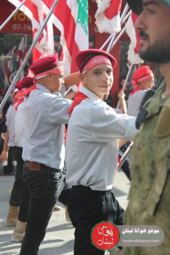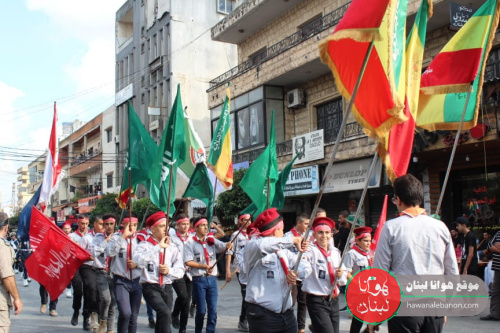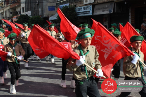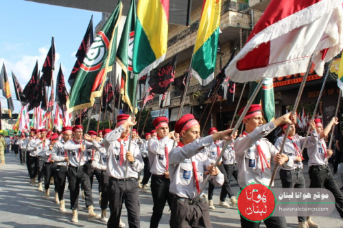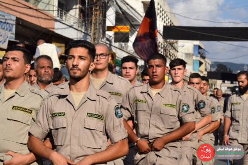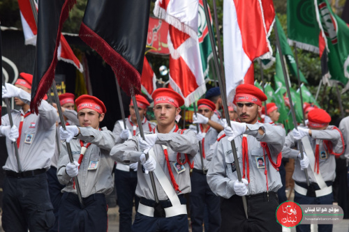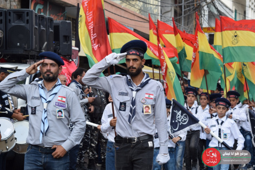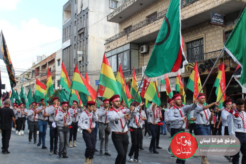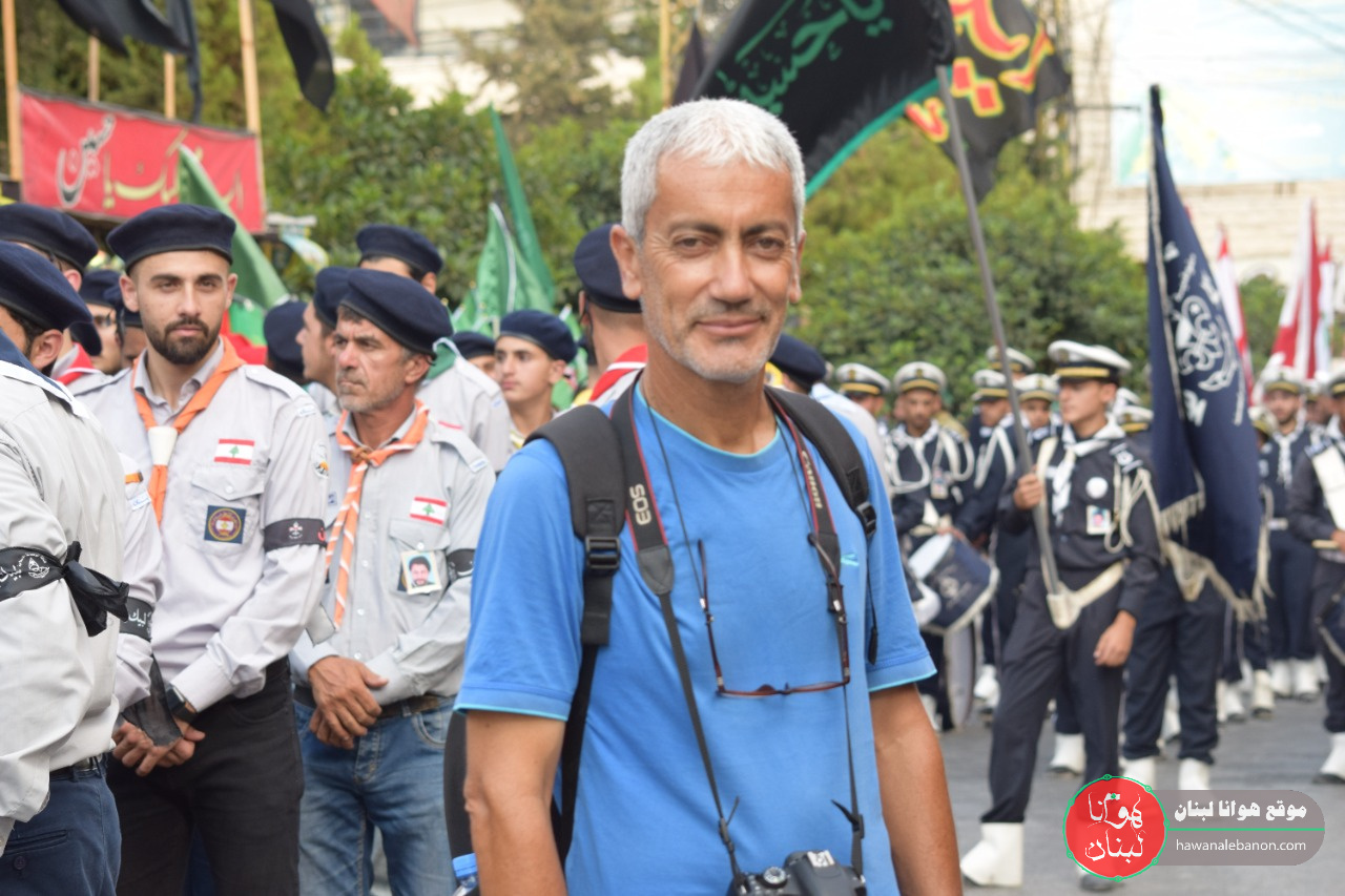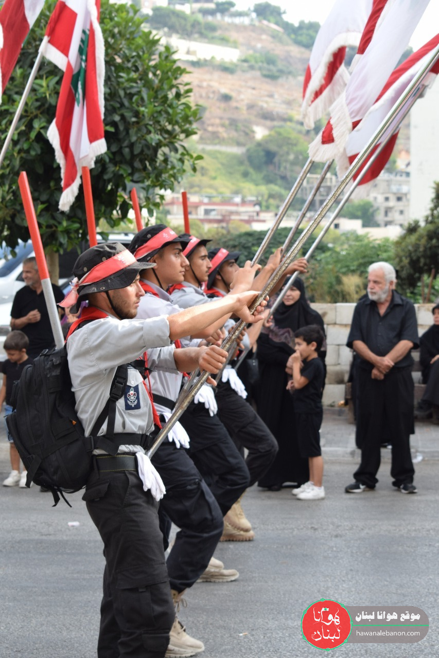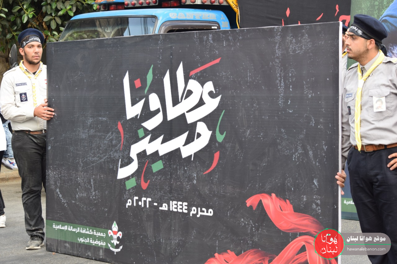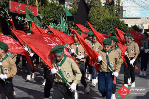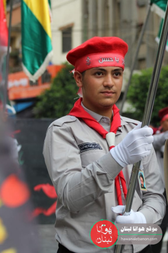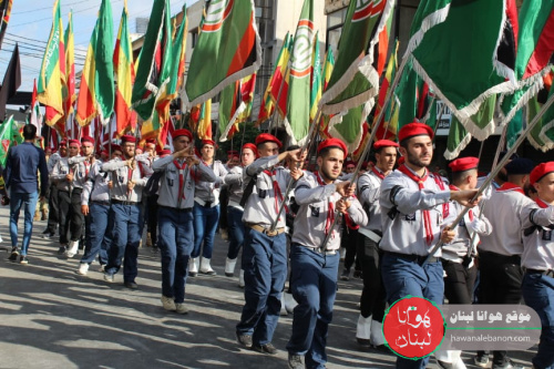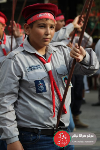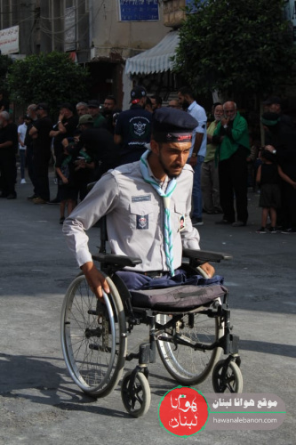 المسيرة انطلقت من أمام دوار المنشية في المدينة يتقدمها فرق رمزية من قادة الأفواج الكشفية والجوالة في كشافة الرسالة الاسلامية والمرشدات والدليلات والزهرات وعناصر من جمعية الرسالة للاسعاف الصحي والمسعفين والمسعفات في الجمعية وحملة الرايات الحسينية والاعلام اللبنانية وحركة امل وكشافة الرسالة الاسلامية والمجسمات العاشورائية ثم امهات الشهداء ومكتب شؤون المرأة في الحركة ثم فرق اللطيمة الذين ارتدوا زيا يجسد علم افواج المقاومة اللبنانية أمل بحضور النائبين قبلان قبلان وهاني قبيسي ، عضو هيئة الرئاسة في حركة امل خليل حمدان، رئيس المكتب السياسي في الحركة جميل حايك، عضو الهيئة التنفيذية في الحركة احمد بعلبكي، امام مدينة النبطية الشيخ عبد الحسين صادق، المسؤول التنظيمي المركزي في الحركة يوسف جابر، مفوض عام كشافة الرسالة قاسم عبيد واعضاء المفوضية في الجمعية، المسؤول التنظيمي لاقليم الجنوب في الحركة نضال حطيط واعضاء قيادة الاقليم، وعدد من اعضاء المكتب السياسي والهيئة التنفيذية في الحركة، محافظ النبطية بالوكالة حسن فقيه، رئيس اتحاد بلديات الشقيف محمد جميل جابر، رئيس اتحاد ساحل الزهراني علي مطر ، رئيس بلدية النبطية الدكتور احمد كحيل، وفد من حزب البعث العربي الاشتراكي، قائد سرية قوى الامن الداخلي في محافظة النبطية العقيد توفيق نصرالله، لفيف من رجال الدين وفعاليات بلدية واختيارية وحشود شعبية من اقضية النبطية واقليم التفاح ومرجعيون وساحل الزهراني.