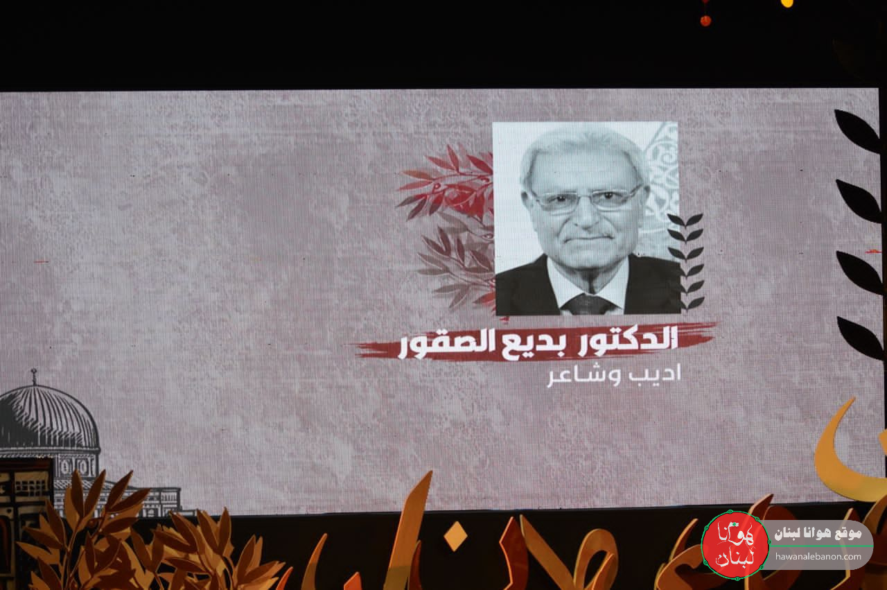 الحفل الذي تقدمه الإعلامية التونسية كوثر البشراوي، وشارك فيه حوالي 50 شخصية سياسية وأدبية وثقافية وإعلامية داعمة للقضية الفلسطينية، من دول عدة أبرزها أمريكا وأستراليا وفرنسا وتركيا وأندونيسيا وايران والسنغال وجنوب افريقيا وتونس والجزائر وغيرها من الدول.