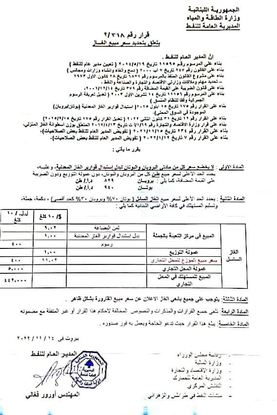 إنخفاض سعر صفيحة البنزين بنوعيه 17 ألف ليرة والمازوت 19 ألف ليرة والغاز 5000 ليرة.