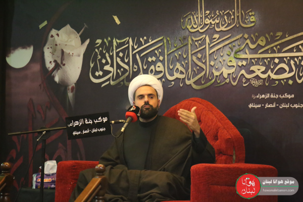 أحيا المعهد التخصصي للخطابة فرع لبنان التابع للعتبة الحسينية بالتعاون مع موكب جنة الزهراء “ع”، ذكرى شهادة السيدة فاطمة الزهراء “ع ” الرواية الثالثة من خلال المجلس السنوي الذي أقيم بهذه المناسبة الأليمة في قاعة الرسول الأعظم “ص” في بلدة أنصار – سيناي، بحضور الشيخ بلال قبيسي والرادور حيدر العطار والملا حسن آشي.
