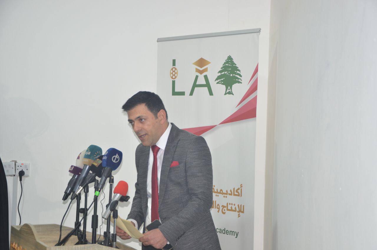 ثم كانت كلمة مصورة عبر الشَاشة لمعالي الإعلامي العربي الاستاذ جورج قرداحي هنأ فيها القائمين على هذه الاكاديمية مؤكداً وقوفه الى جانب إدارتها حيث سيكون له حضور في حفلات التَخرج القادمة في قاعة الاكاديمية.