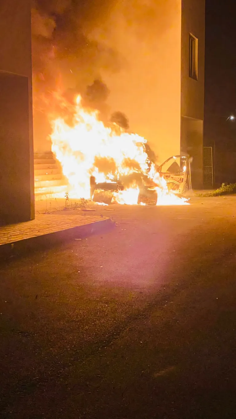 أهالي العاقبية ينفجرون غضباً بعد حادثة الكاميرا ويضرمون النار بسيارة صاحب المعرض.