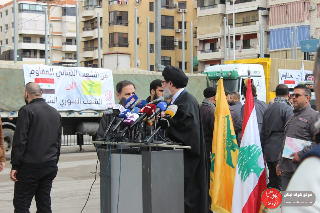 - شعبنا المقاوم وبيئتنا المقاومة كانو كما نعرفهم دائماً واليوم من هذا الموقع ستنطلق الدفعة الاولى لاعانة الشعب السوري لمواجهة هذه المحنة.