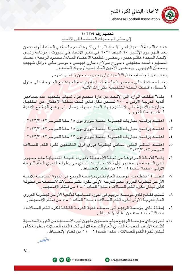 قرار صادم من الاتحاد اللبناني لكرة القدم : رسميا توقيف جمهور النجمة ثلاث مباريات علي صلوب21 فبراير، 2023 رسميا توقيف جمهور النجمة ثلاث مباريات شارك المقال: علي صلوب21 فبراير، 2023