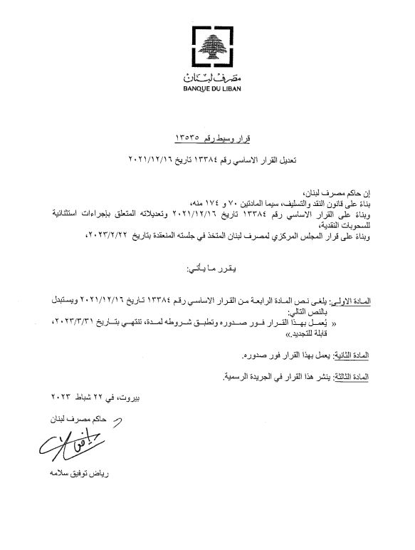 عاجل: مصرف لبنان يمدد العمل بمنصة صيرفة حتى ٣١ أذار