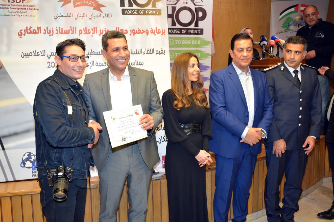 كرّم “اللقاء الشبابي اللبناني – الفلسطيني” عددا من الإعلاميين والمصورين، في احتفال رعاه وزير الإعلام في حكومة تصريف الأعمال زياد المكاري لمناسبة بيروت عاصمة الإعلام العربي، في مركز طبارة – الصنايع.