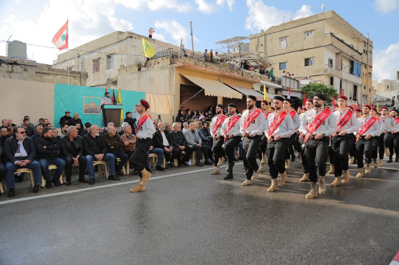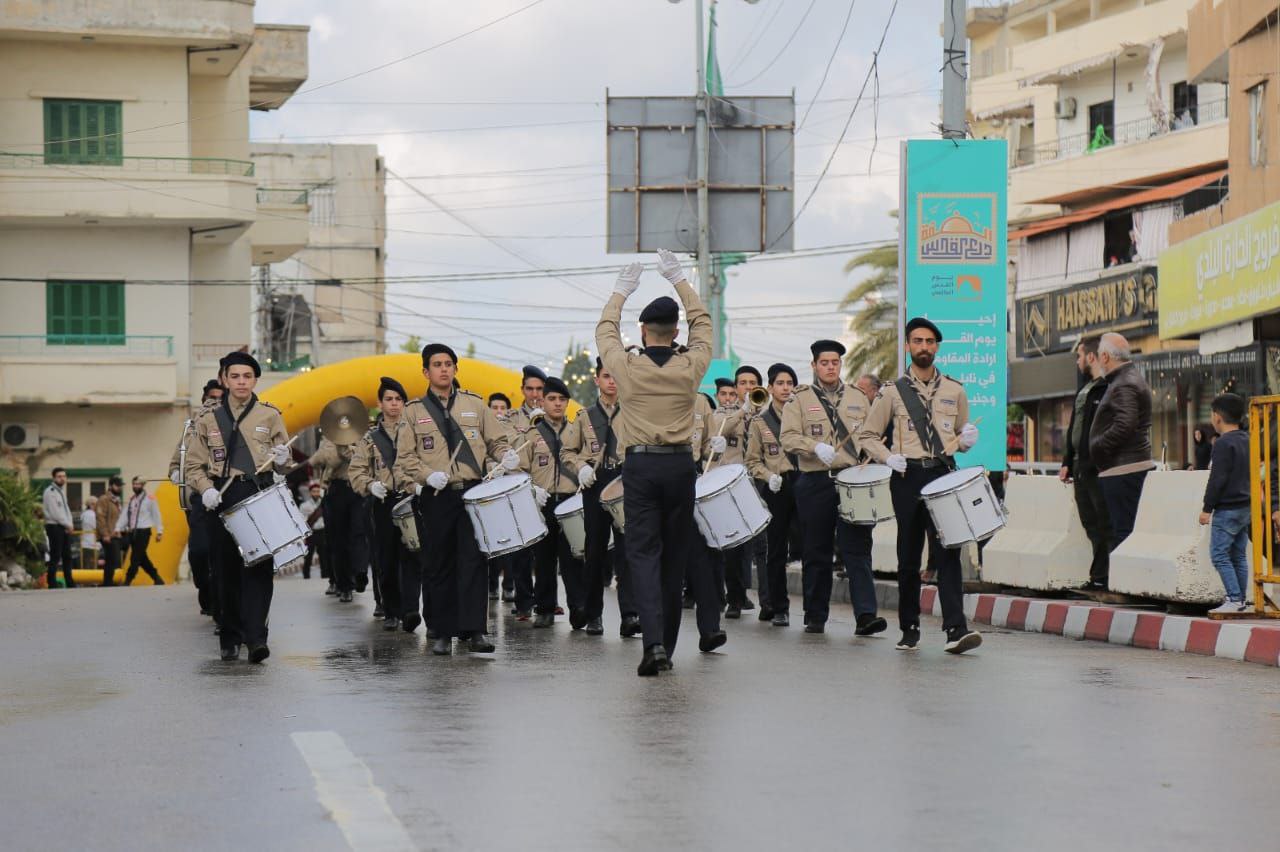 الاحتفال بدأ بوضع راعي الحفل النائب الحاج حسن إكليلا من الزهر على نصب شهداء فلسطين بعدها تلاوة قرآنية مع مراسم تعظيم القرآن أدتها ثلة من الجوالة تلاها النشيد الوطني الفلسطيني والنشيد الوطني اللبناني ونشيد حزب الله من إنشاد فرقة مهدي الإنشادية وعزف الفرقة الموسيقية التابعتين لكشافة الإمام المهدي(عج).
