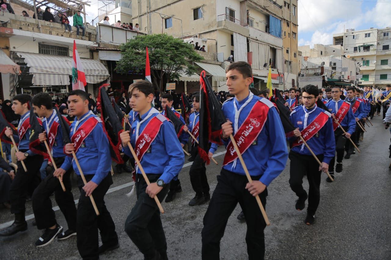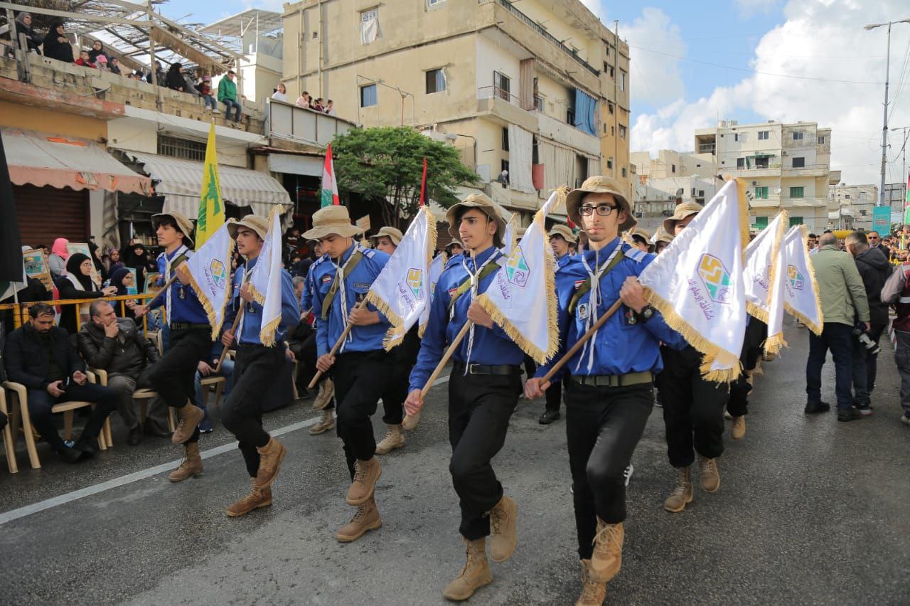 بعدها تم استعراض سرايا القادة والجوالة والكشافة والاشبال في جمعية كشافة الإمام المهدي(عج) حيث تم تسمية كل سرية باسم شهيد من شهداء الانتفاضة الفلسطينية تبعها استعراض سرايا الدفاع المدني في الهيئة الصحية الإسلامية وعرض لآليات الإسعاف والإطفاء والإنقاذ والدراجات النارية.