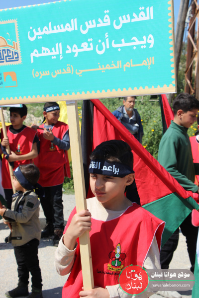 أحيا حزب الله في بلدة أنصارية يوم القدس العالمي بمسيرة جابت شوارع البلدة من ملعب الصلوب وصولاً الى مقام الولي الطاهر بحضور ومشاركة عدد كبير من أهالي البلدة.