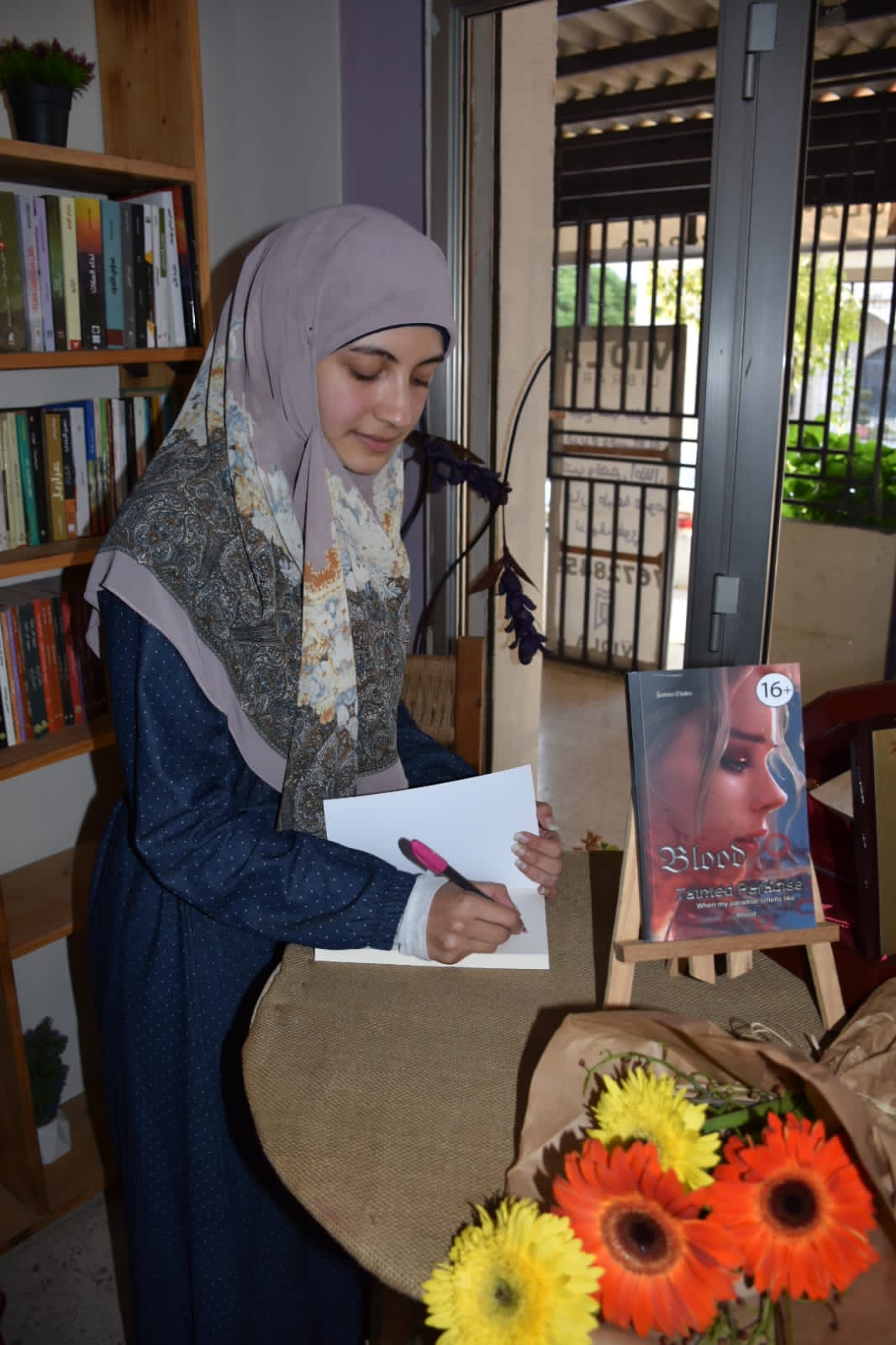 الكاتبة فاطمة محمد شكر توقّع كتابها الجديد “Blood Tainted Paradise”