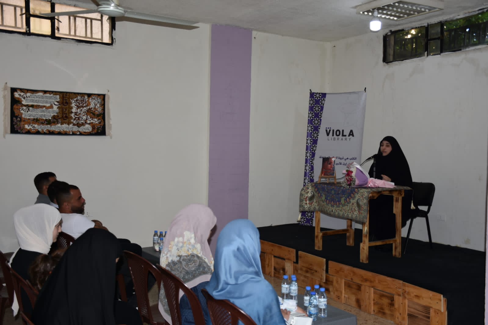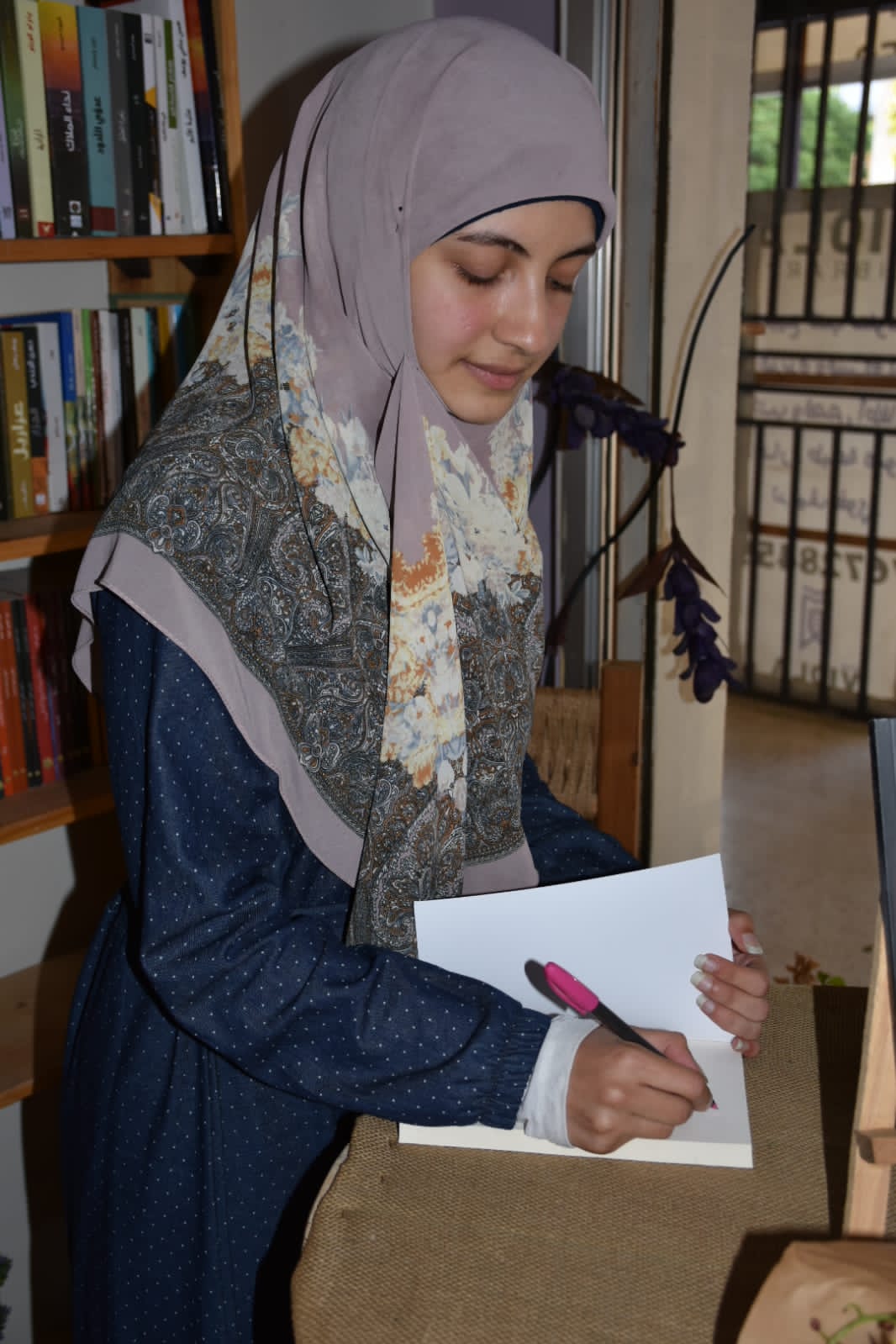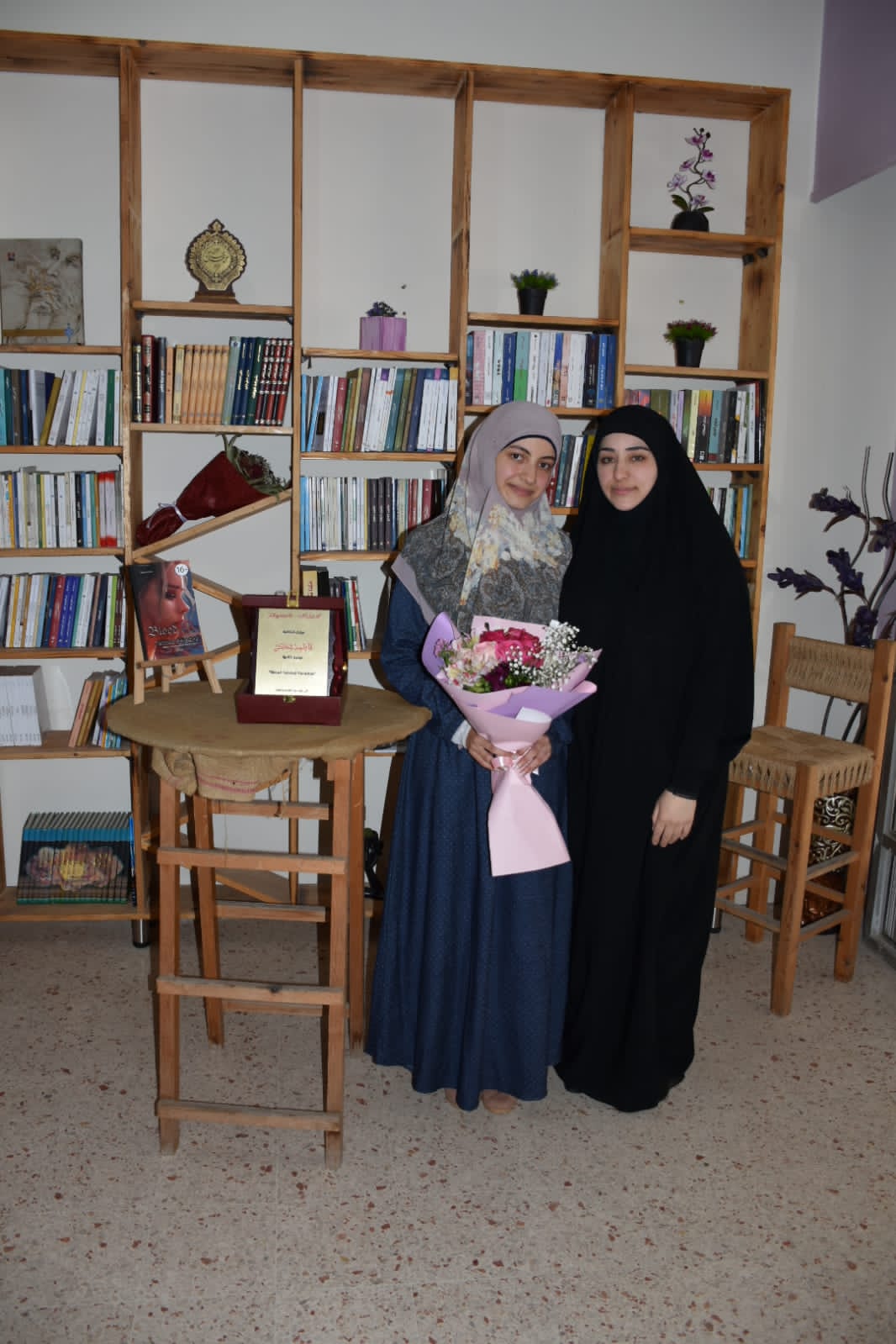 تخلّل الحفل كلمة للكاتبة وكلمة لصاحبة المكتبة زهراء السيد وإهداء درع تكريمي.
