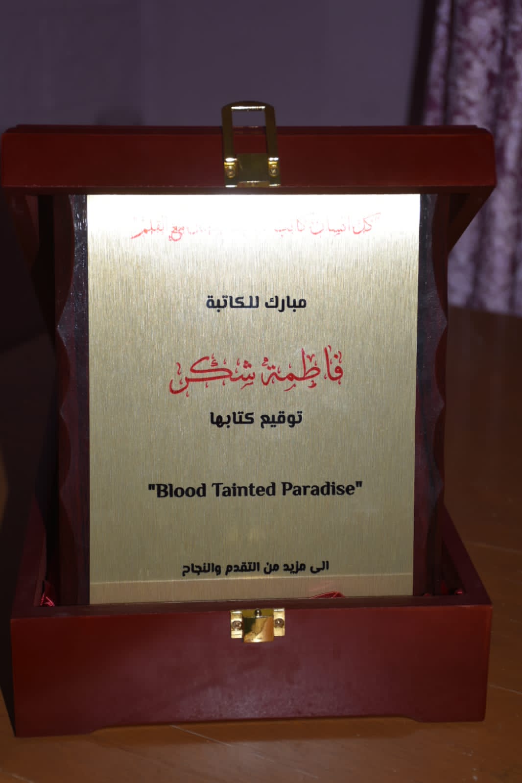 وقّعت الكاتبة فاطمة محمد شكر كتابها الثاني “Blood Tainted Paradise” في مكتبة فيولا – تول، نهار الأربعاء ١٠/أيار، والذي يروي قصة رومانسية مع تحريات وتحقيقات بوليسية بحضور جمع من المثفقين والمهتمين بالكتاب.