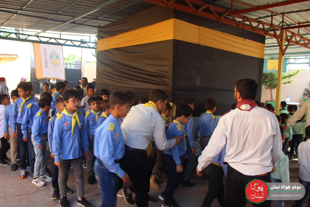 اقامت جمعية كشافة الامام المهدي “عج” في بلدة عدلون، مراسم الحج المبارك، في باحة مدرسة آدم، فكانت البداية آيات بينات من القرآن الكريم رتلها الشبل حيدر علي خازم، وعرّف الحفل القائد زين العابدين خازم، وبعد القى الشيخ عباس عبود محاضرة قيّمة تحدث وشرح للعناصر الكشفية، كيفية اداء مناسك الحج بالشكل الصحيح، حيثُ بدأت العناصر الكشفية بالطواف حوّل مجسم الكعبة الشريفة،ومن ثم توجهت العناصر الى رجم الشيطان بالحجار، ومن ثم مشوا بين الصفا والمروى، وبعدها تناولوا ماء زمزم، ومن ثم كلمة للشيخ هادي خزعل، متحدثاً عن الامور التي يجب اتباعها لكي تكون الحجة صحيحة وفقاً للاحكام الشرعية، وبعدها ألقت العناصر نشيد سلام يامهدي، وسلموا على إمام زمانهم، وختاماً التقطت الصور التذكارية، ووزعوا العناصر التمر على الحاضرون.