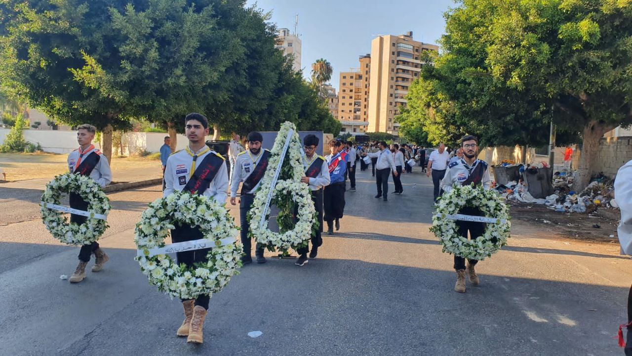 موكب التشييع انطلق سيراً على الاقدام من أمام مسجد الشهداء في ساحة الشهداء باتجاه مجمع السيدة الزهراء عليها السلام في صيدا يتقدمه فرقة موسيقية عزفت لحن الشهادة وفرق كشفية وحملة الاعلام والرايات وامام مجمع الزهراء اقيم عهد القسم والولاء بالسير على خط الشهداء وبعد ان صلى غلى الجثمان الطاهر سماحة الشيخ محمد يزبك واري العلامة الفقيد في ثرى المجمع.