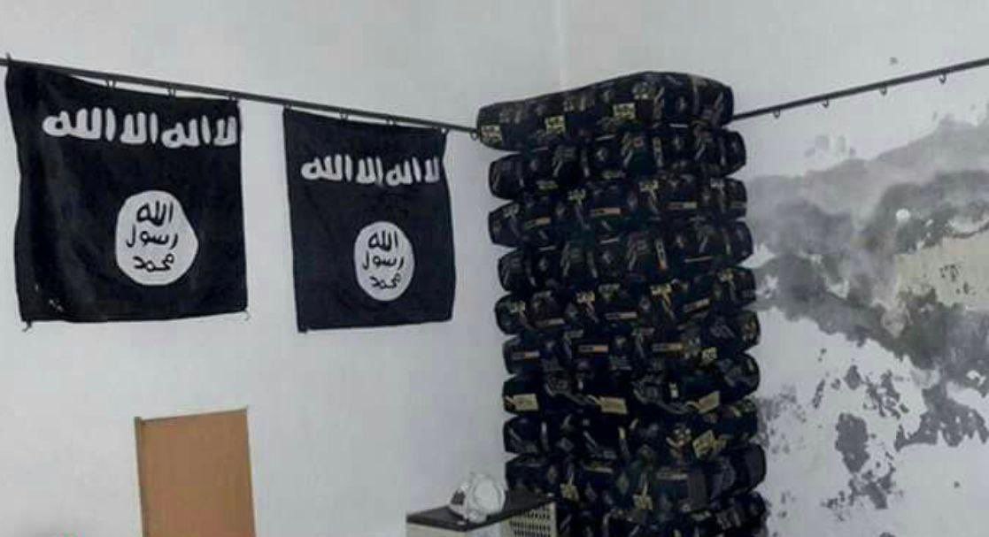 وأظهرت الصور وجود علم تنظيم “داعش” داخل المنزل فضلاً عن مجموعة كبيرة من الذخائر