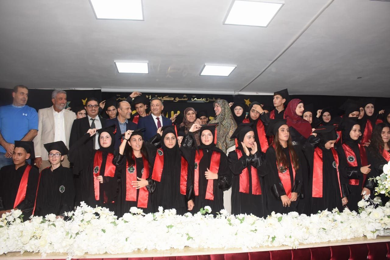 وقال: ها نحنُ نجتمعُ اليومَ لنحتفلَ بتخرجِ الدفعةِ التاسعةِ لتلامذةِ مدرسةِ شوكينَ الرسميةِ في الشهادةِ المتوسطةِ، إننا ومنذُ اليومِ الأولَ للثقةِ التي منحنا اياها الأهلُ في محافظةِ النبطيةِ أكدنا ونؤكدُ مجدداً أمامَكُم السعيَ الجديَ والنيةَ الحقيقيةَ في إعادةِ التعليمِ الرسمي إلى موقعِهِ الرائدِ كما كان دوماً، ولا سيما في ظلِ الظروفِ الصعبةِ التي يعيشُها الوطنُ والمواطنُ على حدٍ سواء، وهذا الأمرُ ينطلقُ من الإيمانِ المسؤولِ أولاً بأنَّ المدرسةَ الرسميةَ هي المنطلقُ لبناءِ جيلٍ جديدٍ ذي رؤيةٍ وطنيةٍ واحدةٍ ضمنَ التعدّدِ، يكونُ على كاهِلِها النهوضُ بلبنانِ موحّدٍَ بعد أن تخرجَ من جُزُرِ المدارسِ الطائفيةِ والمذهبيةِ او حتى التجاريةِ.