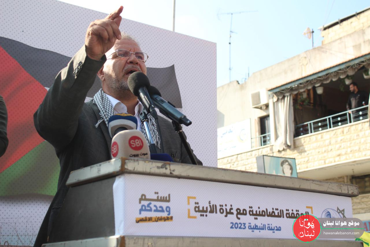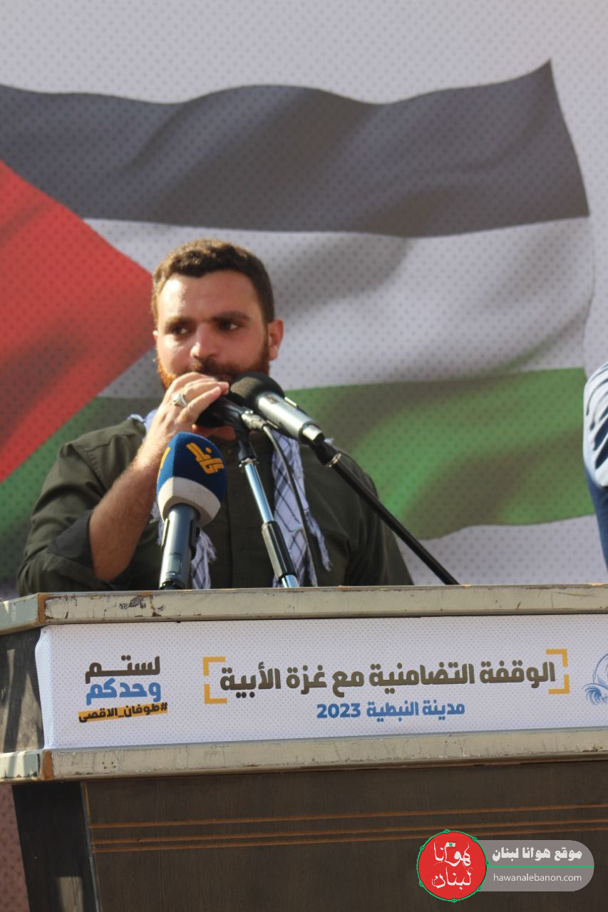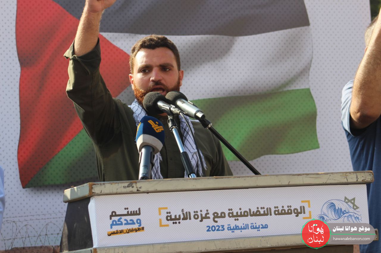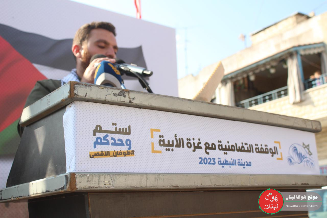 نصرة لغزة، وللشعب الفلسطيني المناضل، الباحث عن الحرية في اروقة الظلم والعبودية، وتضامناً مع الاقصى في طوفانه ضدد العدو الاسرائيلي، وقفة تضامنية في في مدينة النبطية جنوب لبنان.