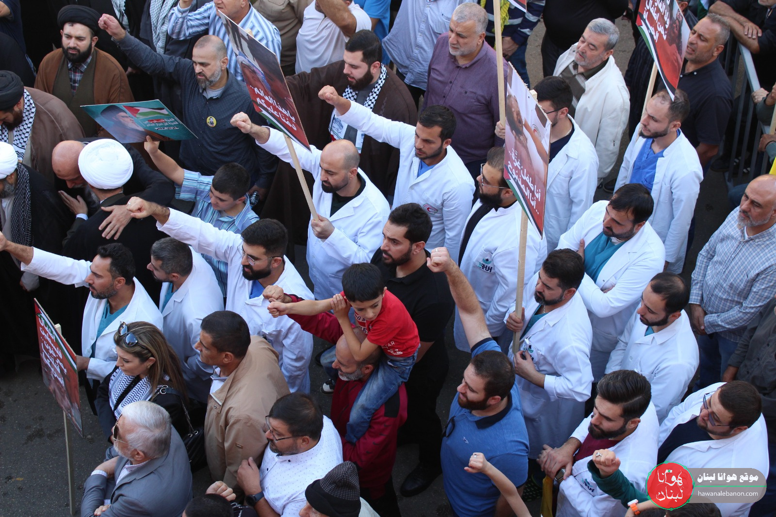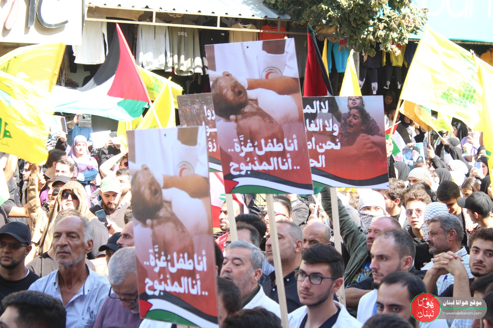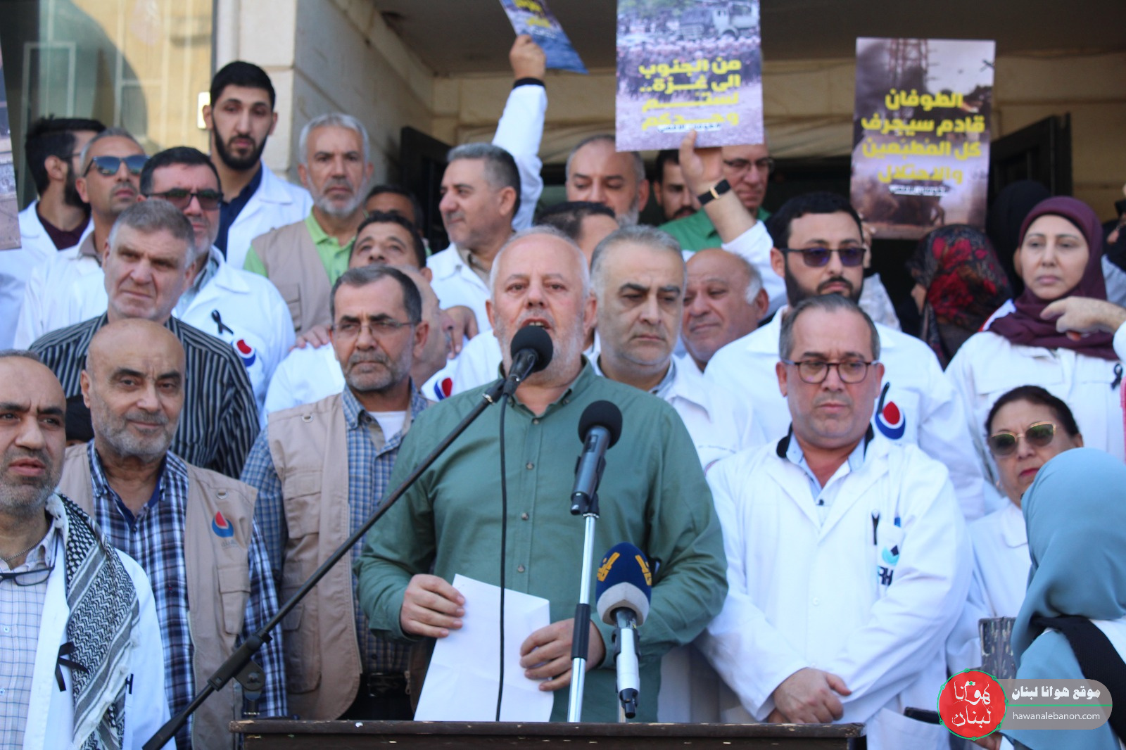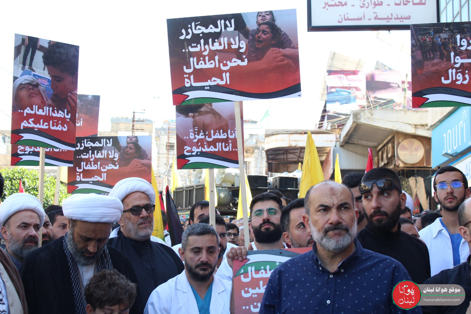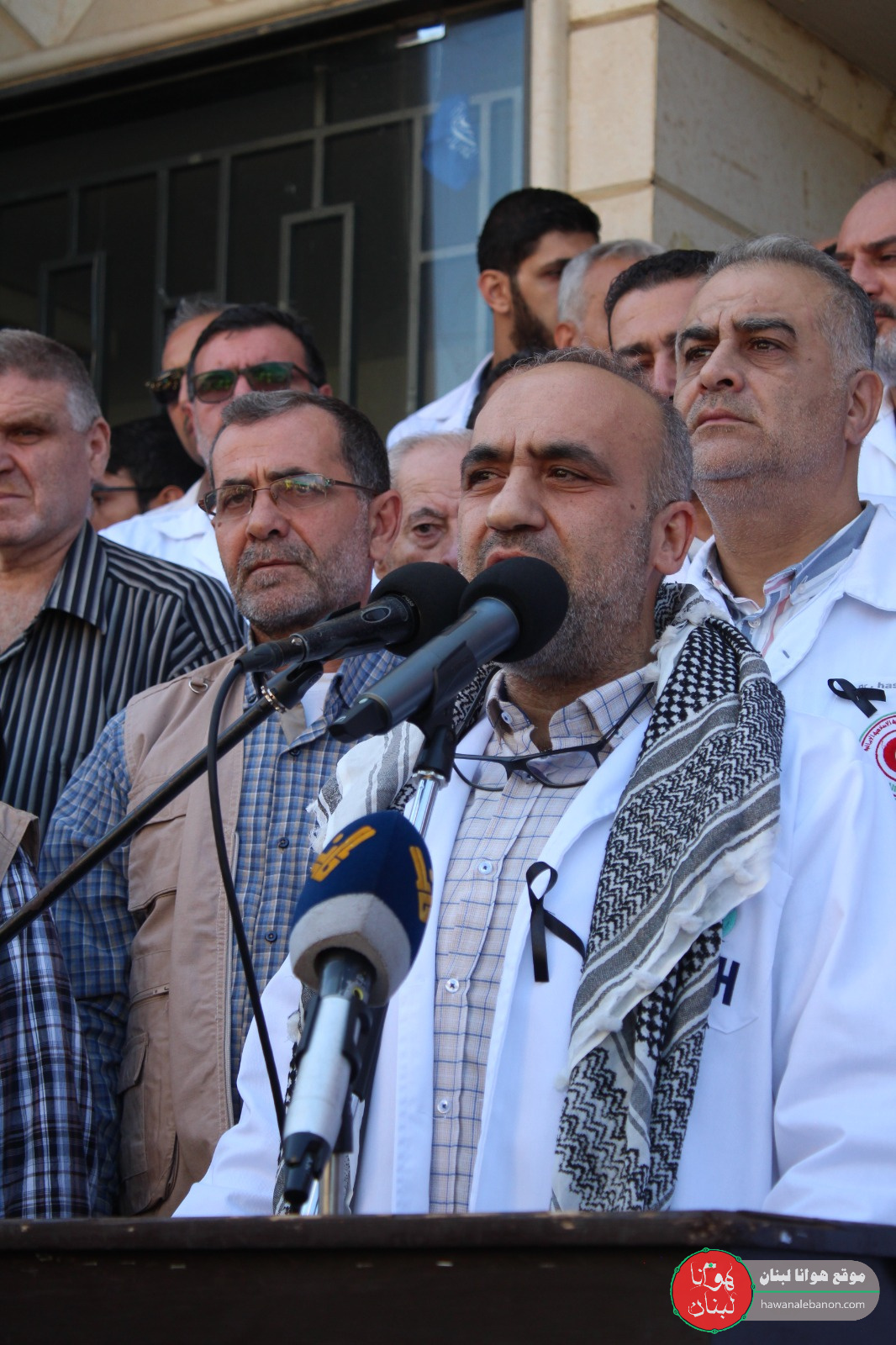 تضامناً مع غزة الصمود، واستنكاراً للمجازر الاسرائيلية الوحشية بحق الاطفال والعزل واخرها مجزرة مستشفى المعمداني، نظم الجسم الطبي والتمريضي في الهيئة الصحية مستوصف الجنوب في مدينة النبطية وقفة تضامنية امام المستوصف بمشاركة الشيخ علي دعموش ومسؤول المنطقة الثانية الحاج علي ضعون، وجمع كبير من الأطباء والممرضين والعلماء وحشد من أهالي المنطقة، حيث رفعوا جميعا الاعلام الفلسطينية.