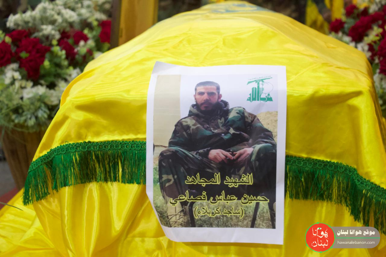 شيع “حزب الله” في روضة الحوراء زبنب وجماهير المقاومة جثمان الشهيد المجاهد حسين عباس فصاعي “ساجد كربلاء”.