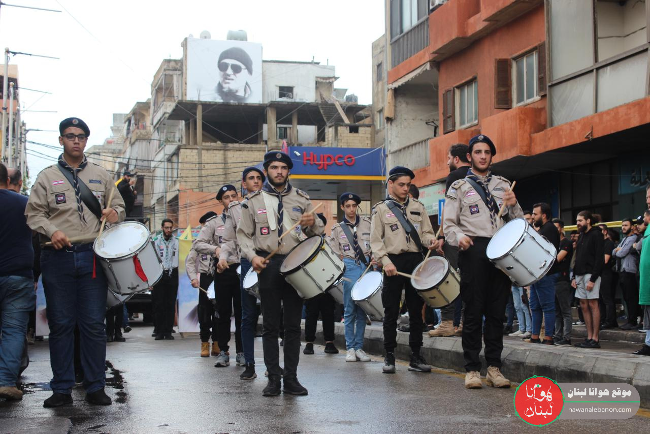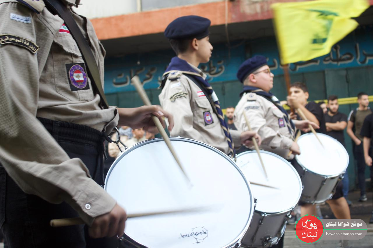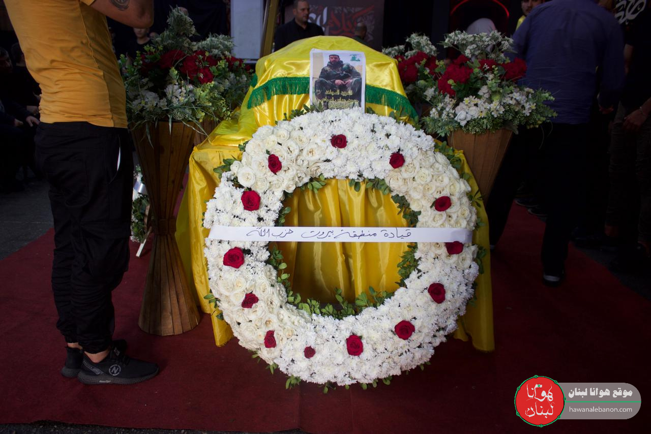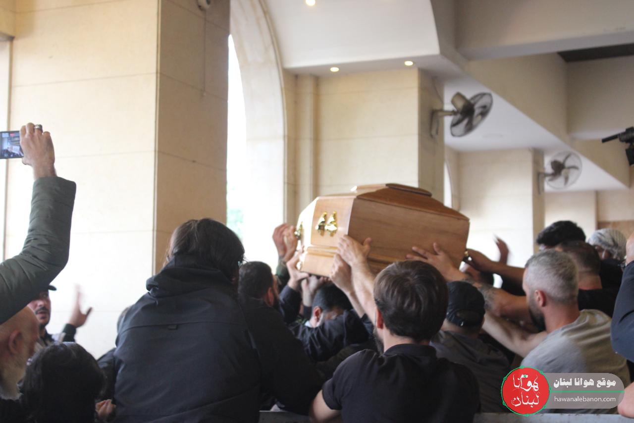 تقدم موكب التشييع الفرق الموسيقية التابعة لكشافة الإمام المهدي “عج”، وحُمل النعش على أكف رفاق الدرب وثلة من المجاهدين لتجوب مسيرة حاشدة شوارع المنطقة باتجاه روضة الحوراء زبنب “ع”، وقد رفعت الأعلام الفلسطينية إلى جانب العلم اللبناني والمقاومة.