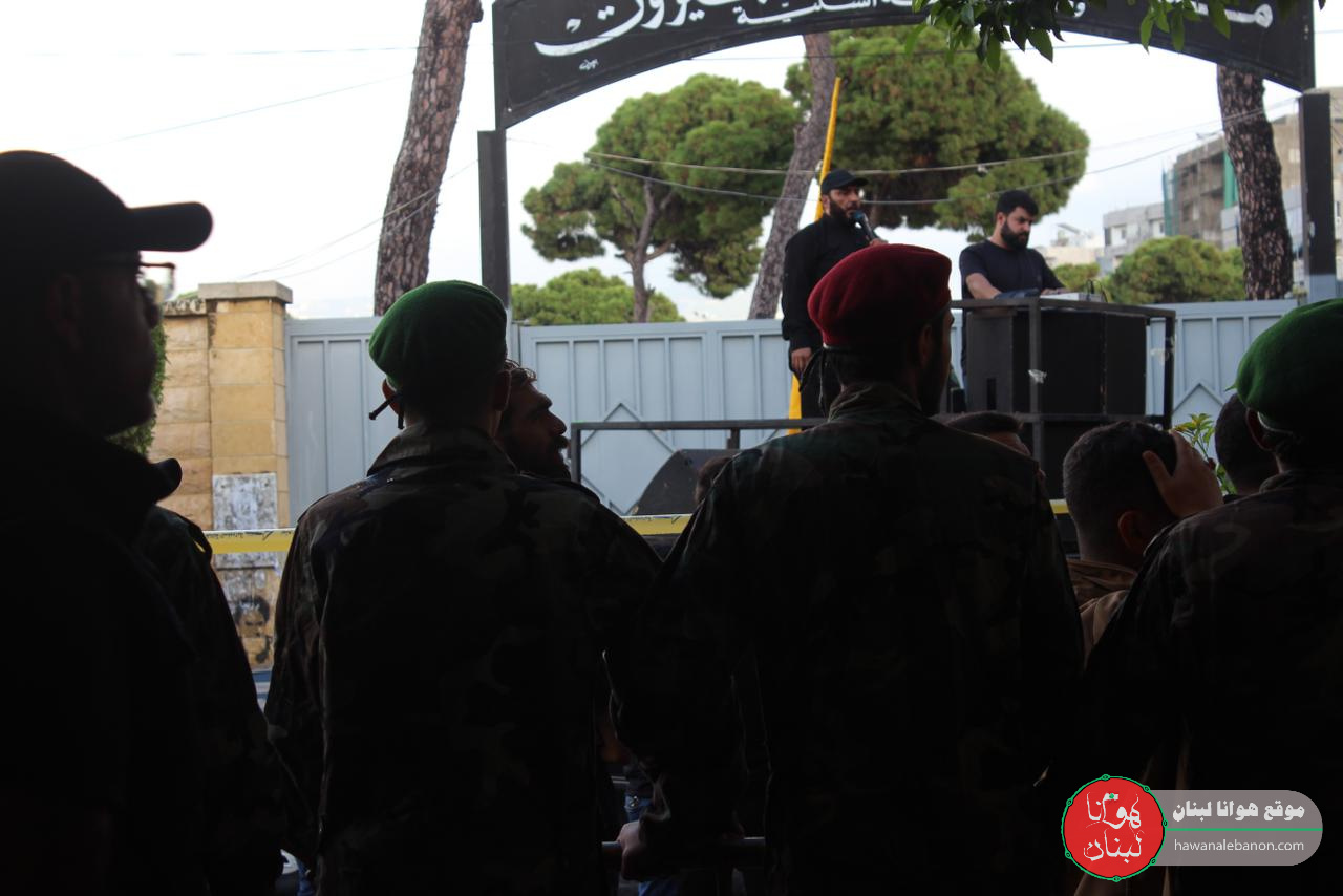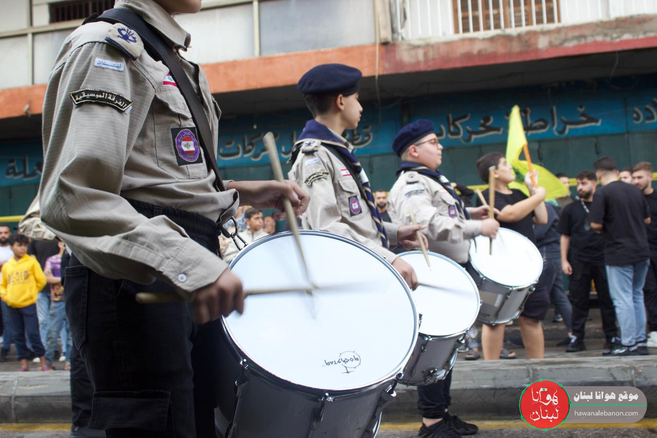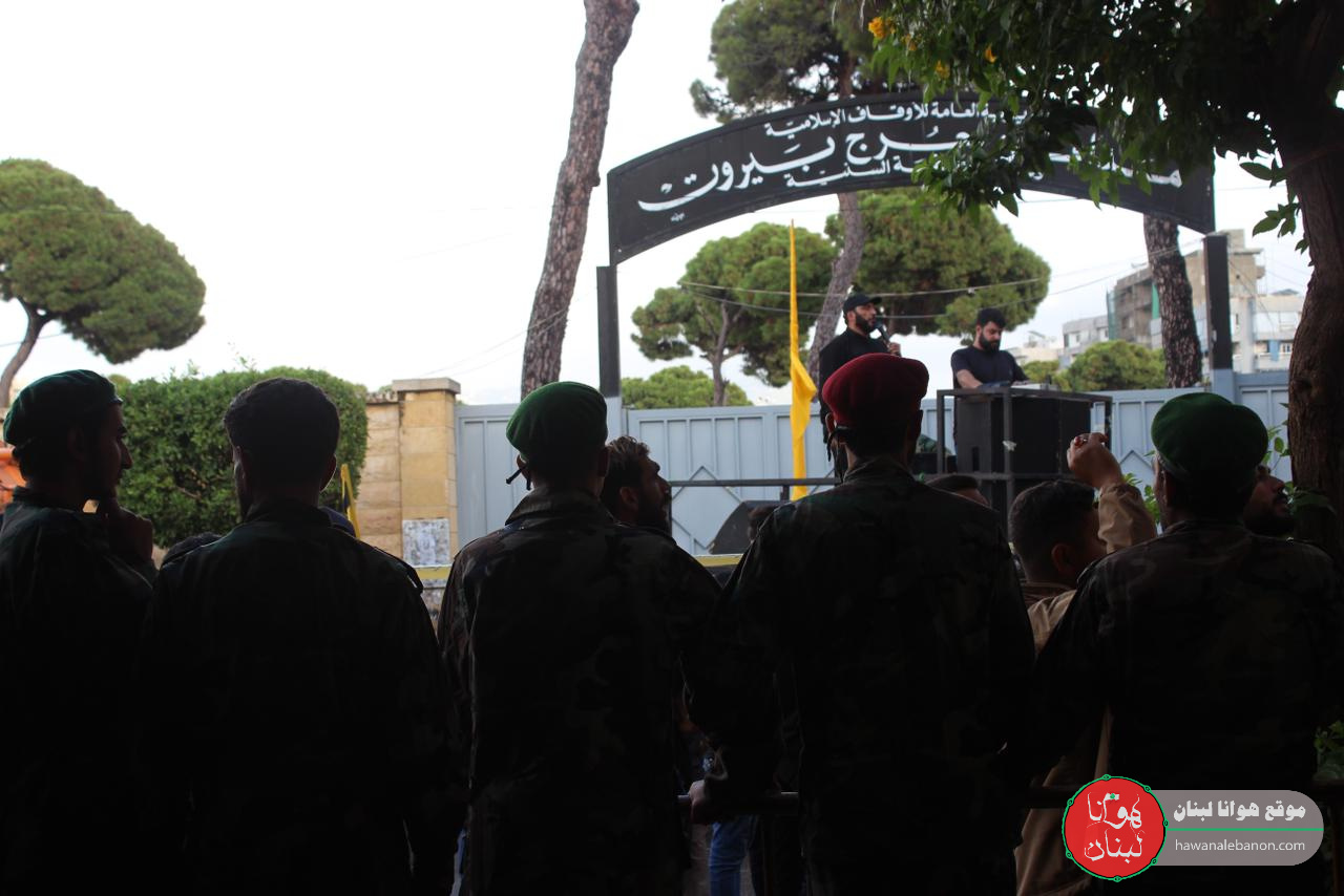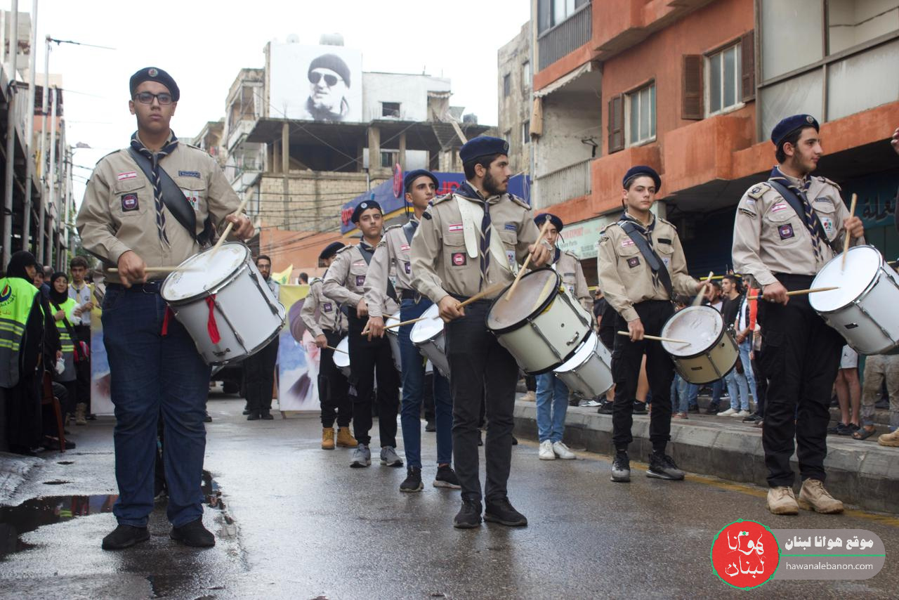 تقدم موكب التشييع الفرق الموسيقية التابعة لكشافة الإمام المهدي “عج”، وحُمل النعش على أكف رفاق الدرب وثلة من المجاهدين لتجوب مسيرة حاشدة شوارع المنطقة باتجاه روضة الحوراء زبنب “ع”، وقد رفعت الأعلام الفلسطينية إلى جانب العلم اللبناني والمقاومة.