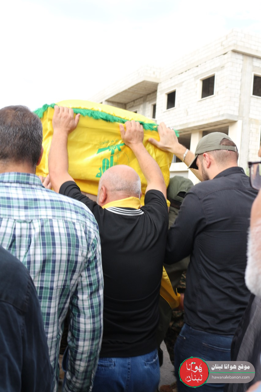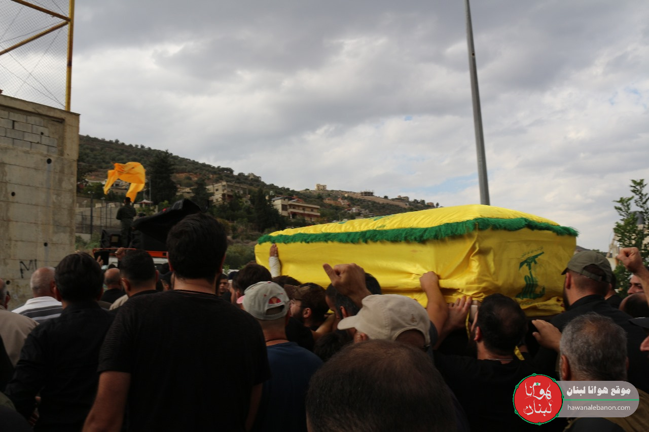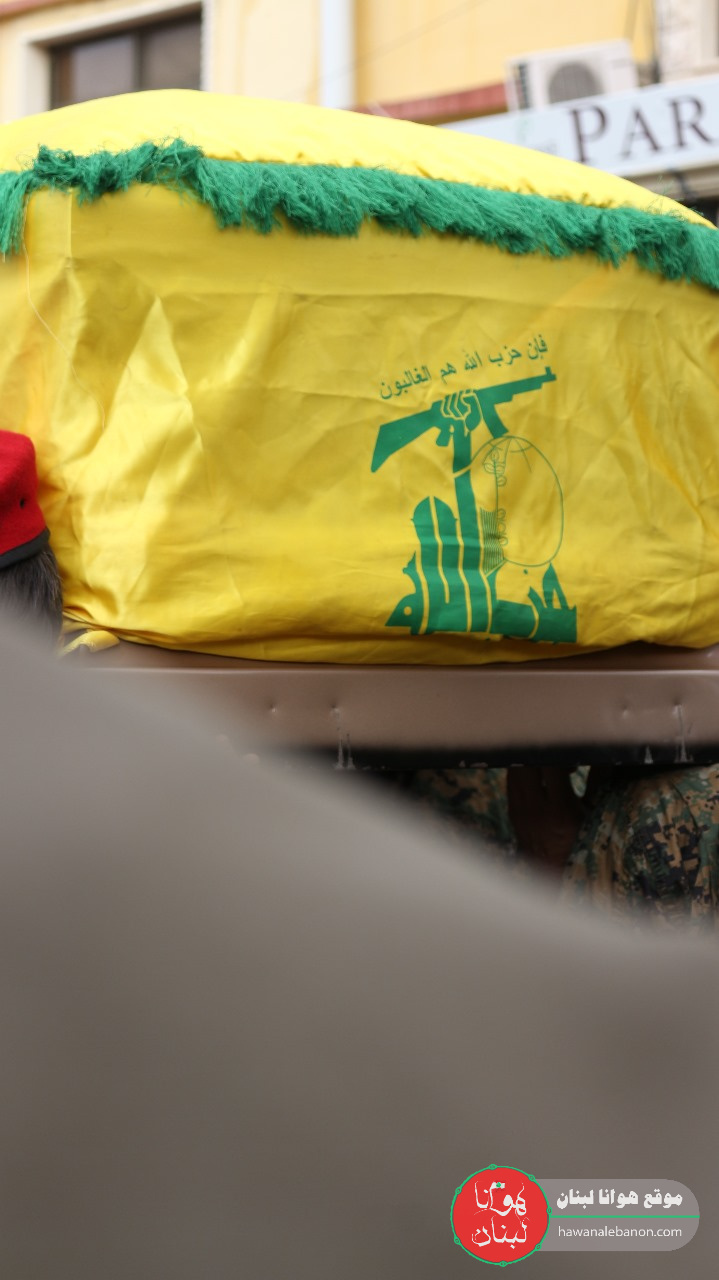 وانطلق موكب التشييع من منزل ذوي الشهيد وحمل الجثمان على الاكف وقد لف براية “حزب الله”.