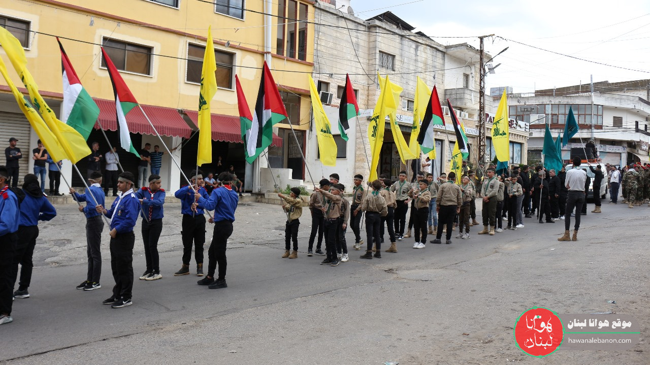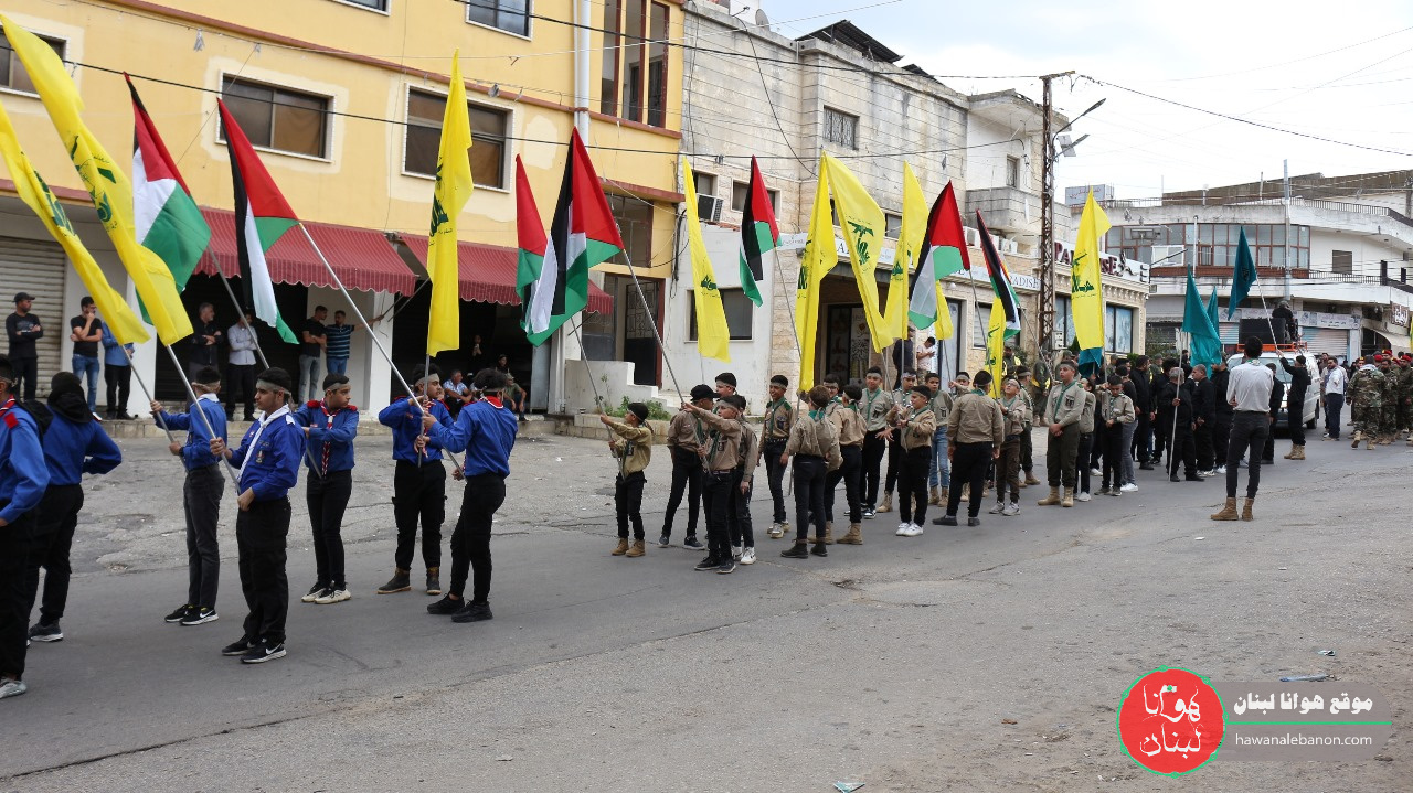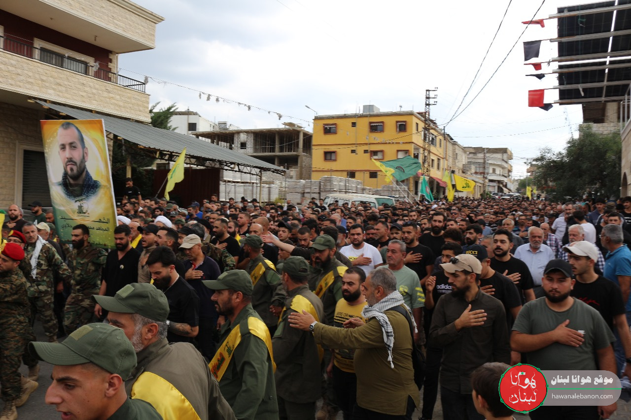وأنتظم المشيعون في موكب مهيب تقدمه حملة الاعلام اللبنانية ورايات المقاومة وحركة أمل وصور للامام الخميني والسيد الخامنئي والامام السيد موسى الصدر وللسيد حسن نصرالله وصور لشهداء وقادة المقاومة، اضافة الى صورة عملاقة للشهيد وحملة الاكاليل وفرق من كشاف الامام المهدي.