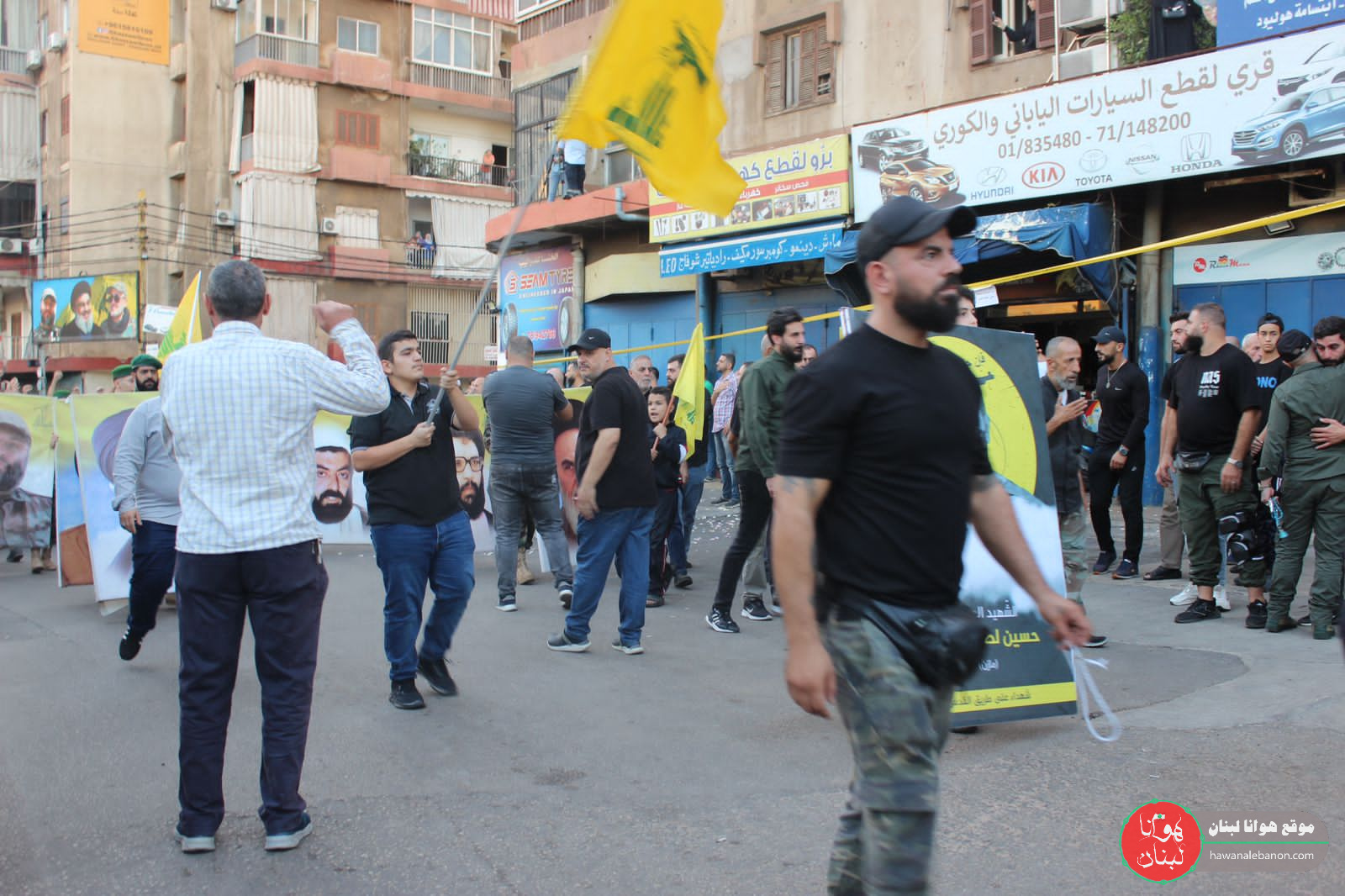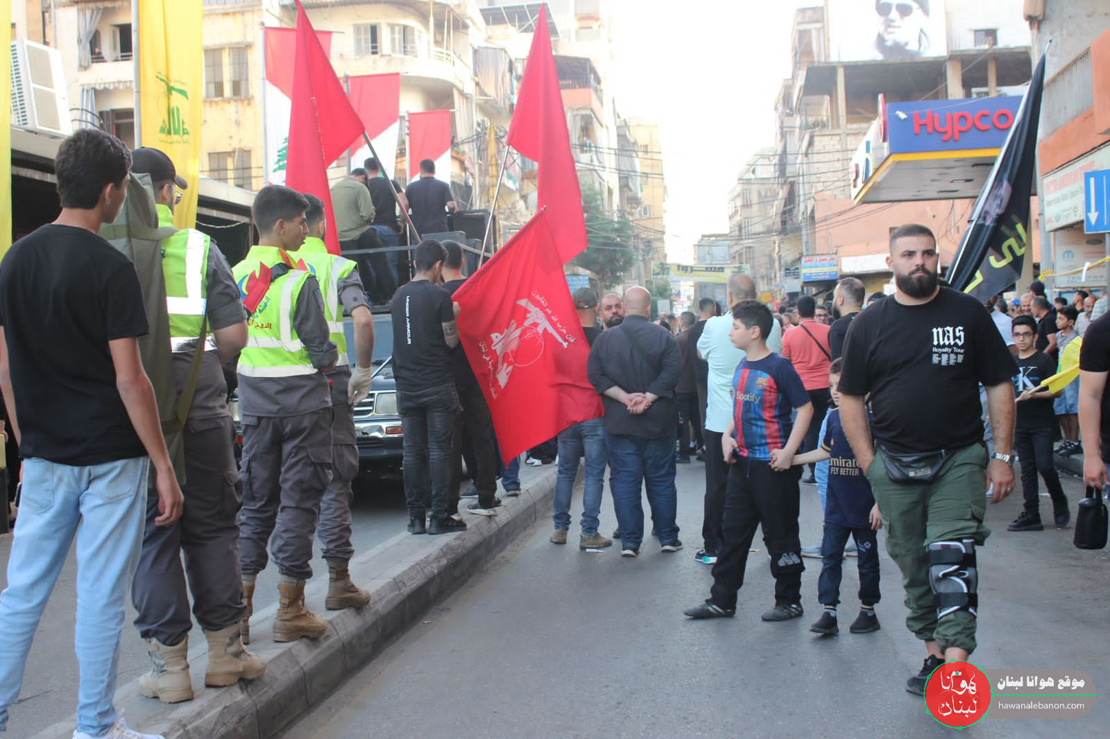 وأنتظم المشيعون في موكب مهيب تقدمه حملة الاعلام اللبنانية ورايات المقاومة وصور للامام الخميني والسيد الخامنئي والامام السيد موسى الصدر وللسيد حسن نصرالله وصور لشهداء وقادة المقاومة، اضافة الى صورة عملاقة للشهيد وحملة الاكاليل وفرق من كشاف الامام المهدي.