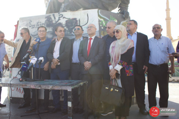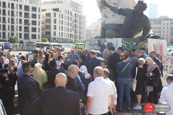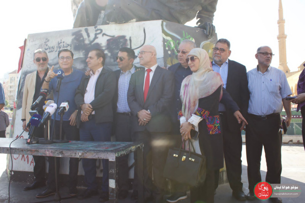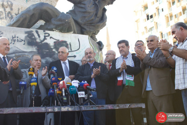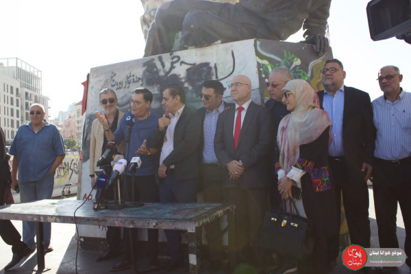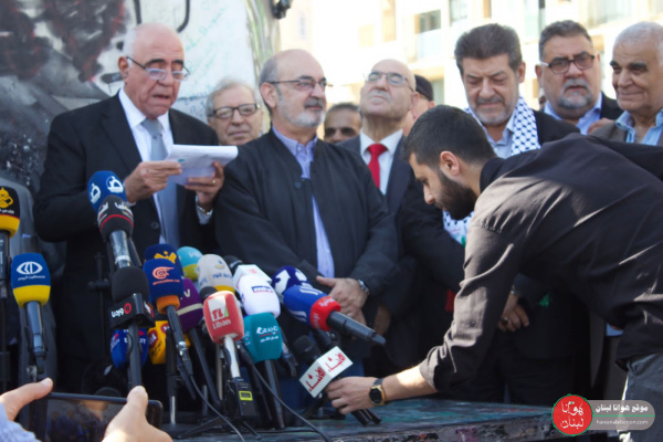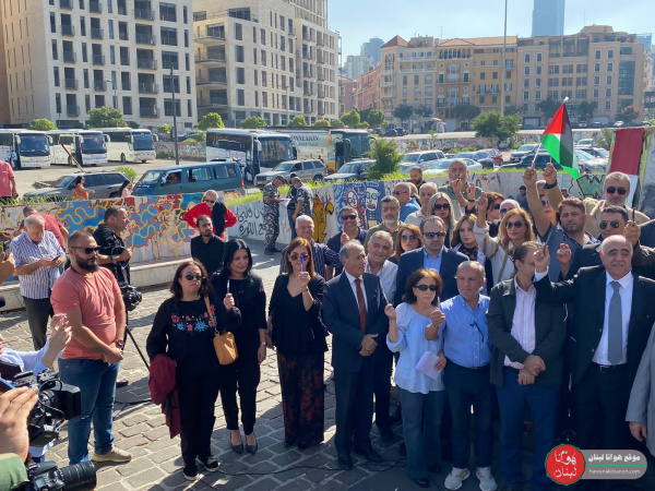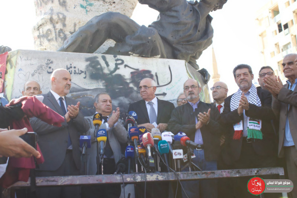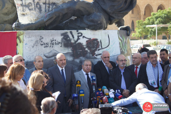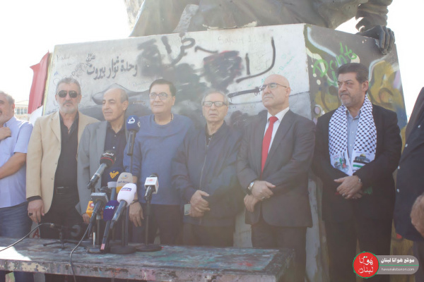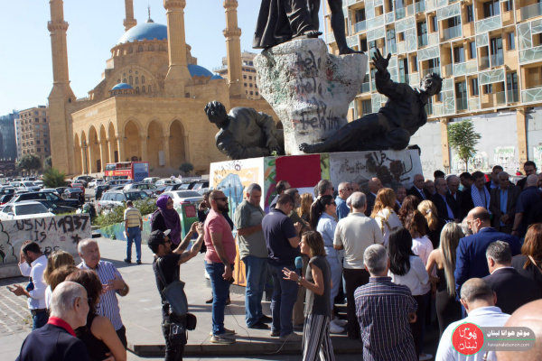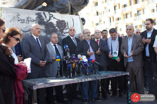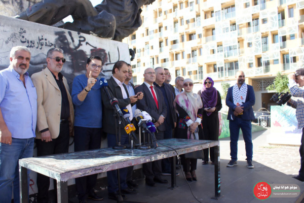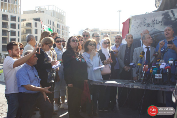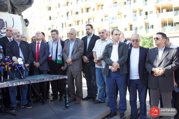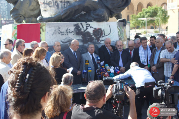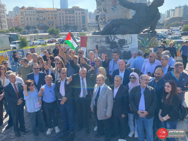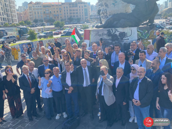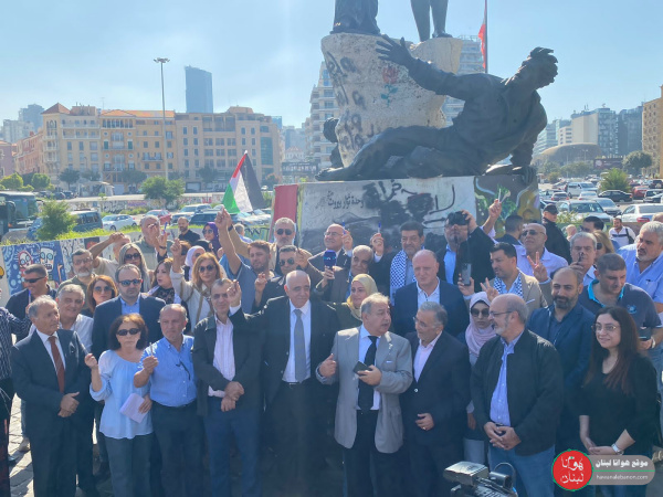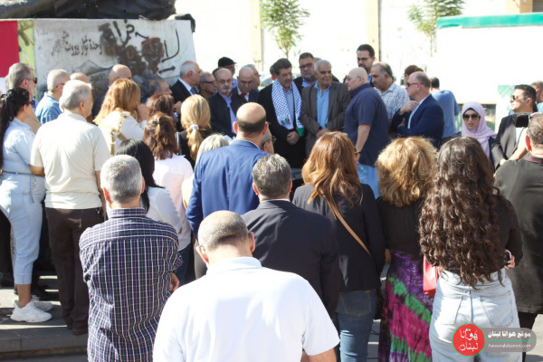 أقامت نقابة الصحافة ومحرري الصحافة اللبنانية والمصورين وقفة تضامنية مع صحافيي وأطفال لبنان وفلسطين أمام تمثال الشهداء في ساحة الحريو وسط بيروت.