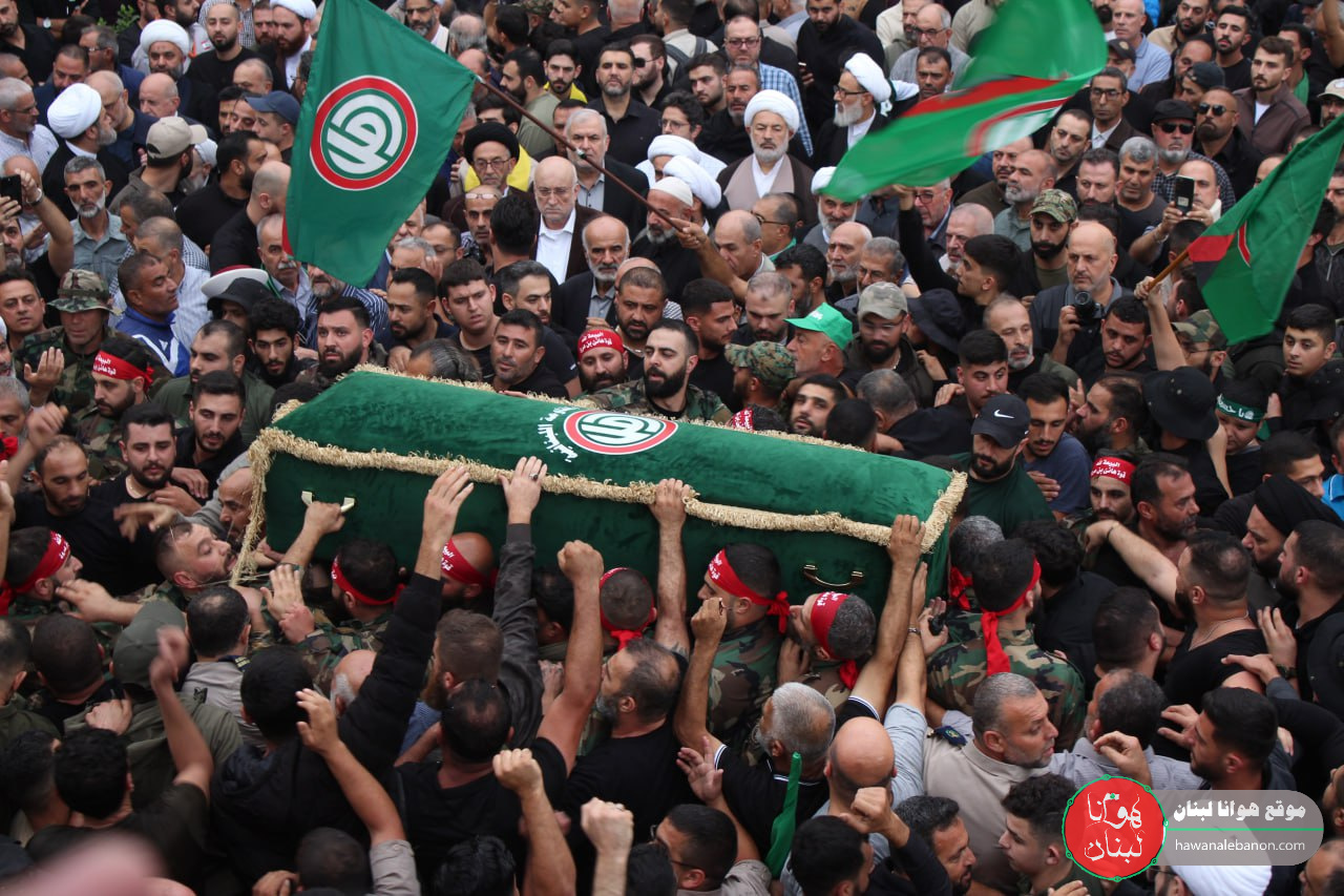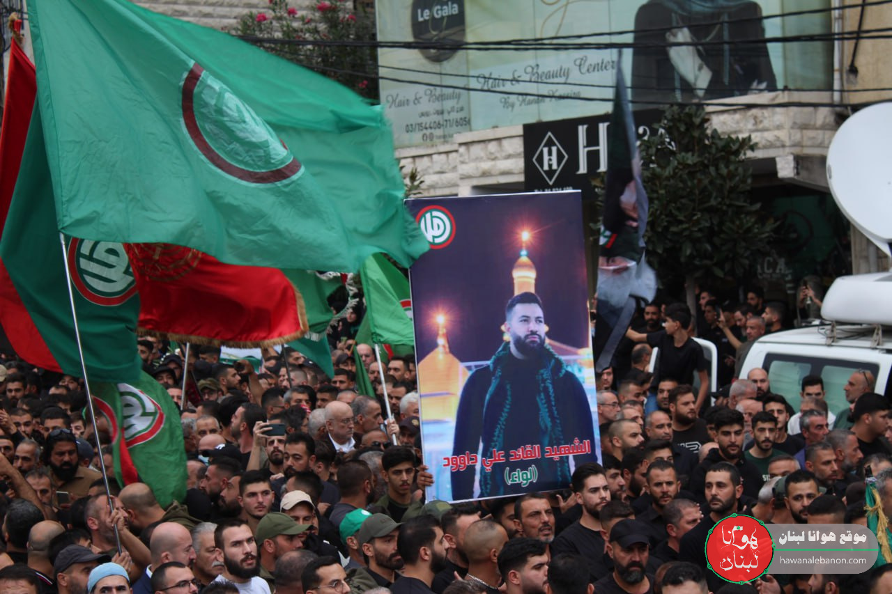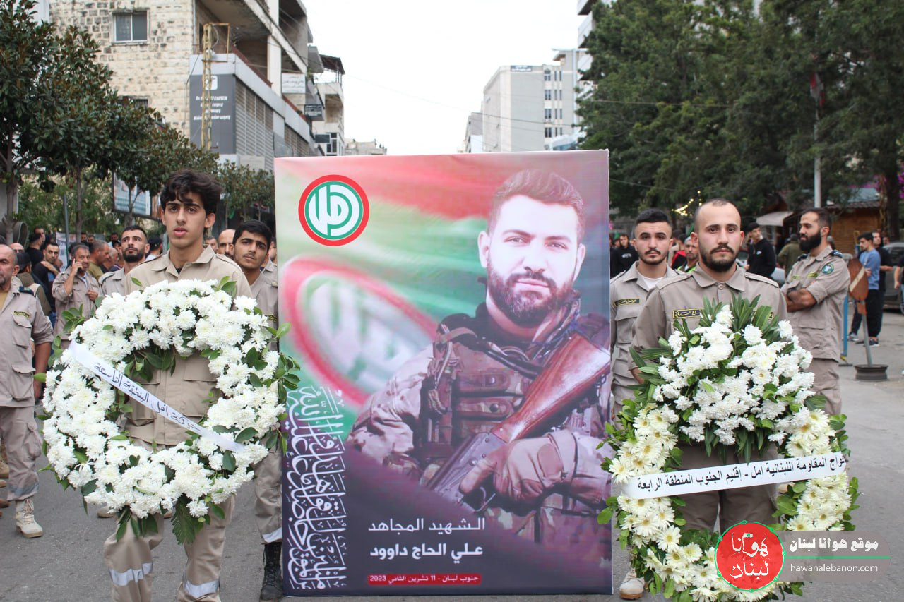 بمأتم شعبي وحركي حاشد شارك فيه عشرات الالاف من ابناء الجنوب ومن مختلف المناطق اللبنانية غصت بهم الشوارع الرئيسية والطرقات الفرعية لمدينة النبطية شيعت حركة امل واهالي بلدة مليخ ومدينة النبطية وآل داوود الشهيد المقاوم علي جميل داوود الذي ارتقى أمس أثناء قيامه بواجبه الجهادي في مواجهة العدوان الإسرائيلي على محور ربثلاثين الطيبة ، وقد تقدم المشيعين أعضاء هيئة الرئاسة في حركة امل النائب قبلان قبلان ، رئيس المكتب السياسي في الحركة جميل حايك ، الدكتور خليل حمدان ورئيس الهيئة التنفيذية في الحركة مصطفىفوعاني ، واعضاء الهيئة التنفيذية والمكتب السياسي في الحركة رئيس كتلة الوفاء للمقاومة النائب محمد رعد ، النواب أعضاء كتله التنمية والتحرير النيابية هاني قبيسي ، أشرف بيضون ، ناصر جابر السياسي و علي حسن خليل ، امام مدينة النبطية العلامة الشيخ عبد الحسين صادق ، رئيس رئيس مجلس الجنوب هاشم حيدر ، رئيس اتحاد بلديات الشقيف محمد جميل جابر، رئيس بلديه النبطيه احمد كحيل رئيس اتحاد بلديات ساحل الزهراني علي مطر ، نائب رئيس الاتحاد العمالي العام حسن فقيه ، مفتي صور وجبل عامل المسؤول الثقافي المركزي في الحركة العلامة الشيخ حسن عبد الله ، المسؤول التنظيمي لاقليم الجنوب في الحركة نضال حطيط واعضاء قيادة اعضاء قيادة الاقليم ، المسؤول التنظيمي لاقليم جبل عامل في الحركة علي اسماعيل واعضاء قيادة الاقليم ، وفد من قيادة اقليم بيروت في الحركة برئاسه “ابو رضا” مفوض عام كشافة الرسالة الاسلاميه قاسم عبيد ، واعضاء قيادة المفوضية ، وفد من مكتب شؤون المرأه المركزي في الحركة ومكاتب شؤون المراه في اقليمي الجنوب وجبل عامل ، فعاليات بلدية وروحية ودينية وتربوية وإختيارية.
