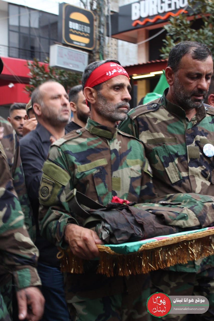 بعدها حمل الجثمان على أكف إخوته في افواج المقاومة اللبنانية أمل حيث اخترق موكب التشييع بصعوبة شوارع مدينة النبطية الرئيسية وصولا الى النادي الحسيني للمدينة حيث أم سماحة العلامة الشيخ عبد الحسين صادق الصلاة على الجثمان ليوارى بعدها الثرى في جبانة مدينه النبطية.