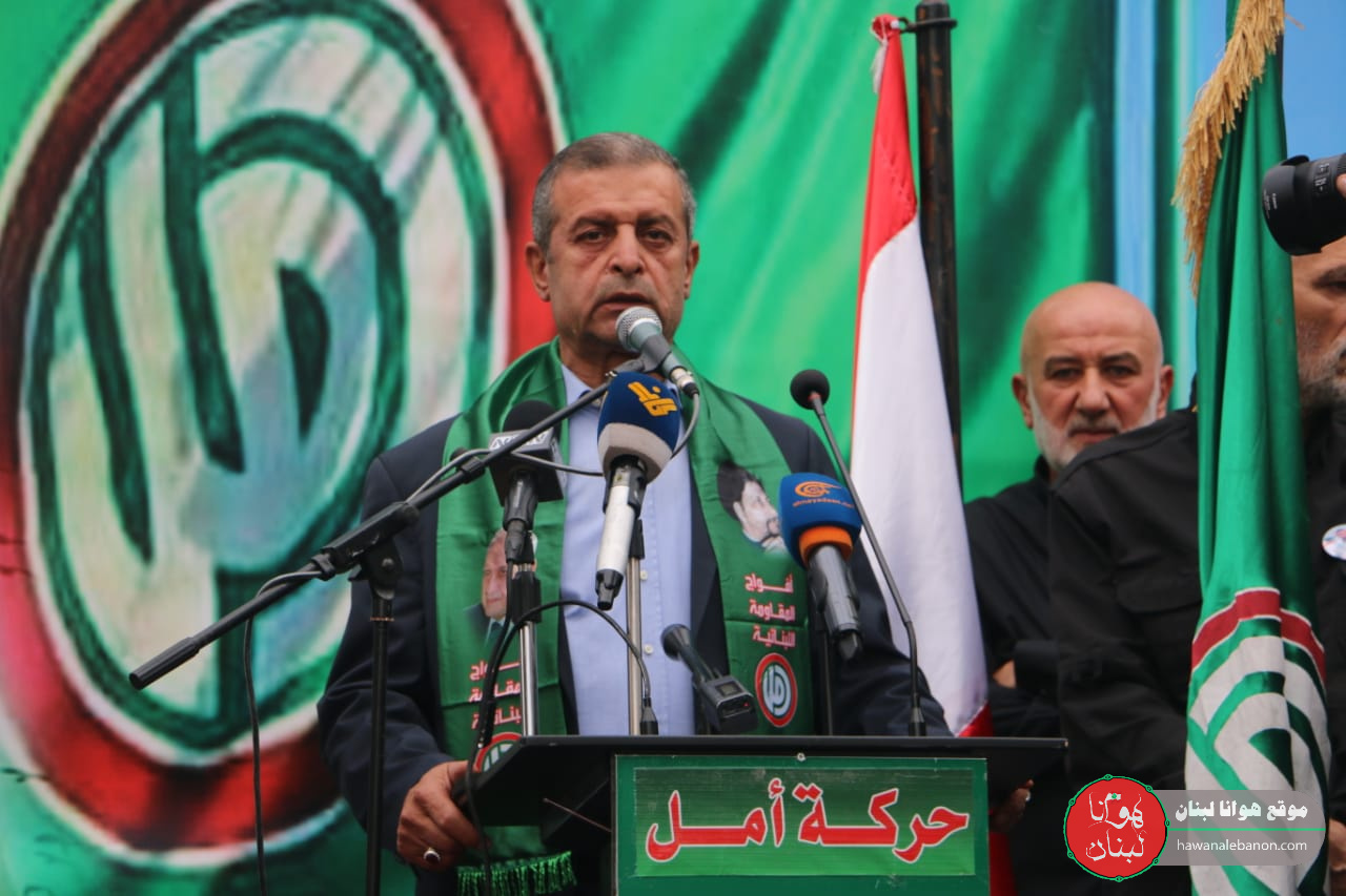 بعدها القى مدير مكتب رئيس مجلس النواب الاستاذ نبيه بري في المصيلح النائب هاني قبيسي كلمة الحركة استهلها بتوجيه التحية لروح الشهيد علي داوود وللجرحى ولسائر الشهداء المقاومين في لبنان وقطاع غزة مشددا في كلمته على ان المقاومة اللبنانية تدافع عن سيادة لبنان في مواجهة اسرائيل وعدوانيتها اثبتت من خلال جرائمها و همجيتها انها لا تفهم الا لغة المقاومة ، لافتاً الى ان حشد الاساطيل يمثل استفزازا لكل الاحرار داعيا الى تمتين وحدة الصف الوطني اللبناني في الداخل مذكراً بمواقف الامام السيد موسى الصدر التي اعتبر فيها ان الوحدة الوطنية هي أفضل وجوه الحرب مع اسرائيل.