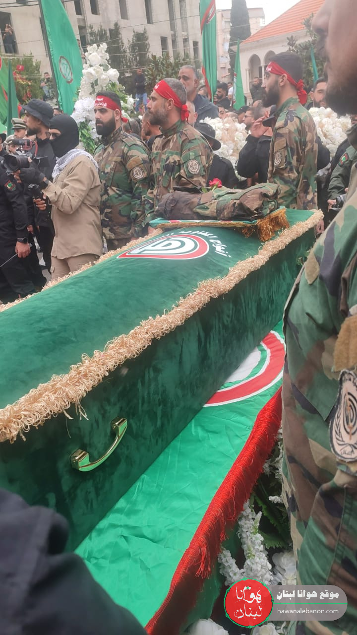 مراسم وداع الشهيد أستهلت من امام النصب التذكاري لللعالم حسن كامل الصباح ، حيث سجي الجثمان الذي لف بعلم حركة امل وعزفت له الفرقة الموسيقية في كشافة الرسالة الاسلامية لحن الموت ، ثم أدت له ثلة من اخوته في افواج المقاومة اللبنانية أمل التحية ثم قسم الولاء ومتابعة المسيرة.